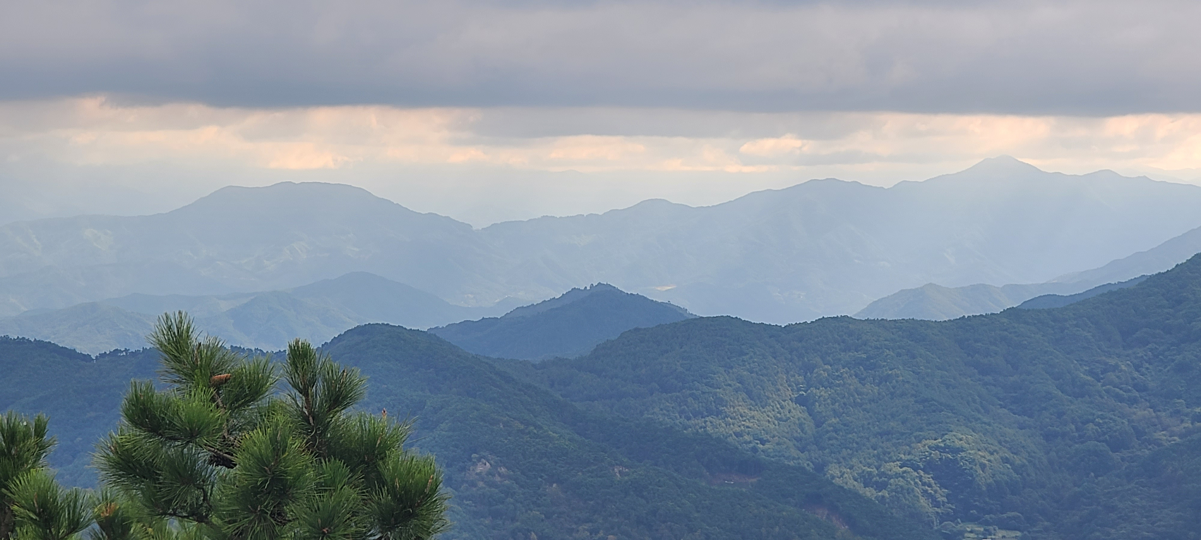 거창 가조의 오도산과 좌측 박유산도 보인다.