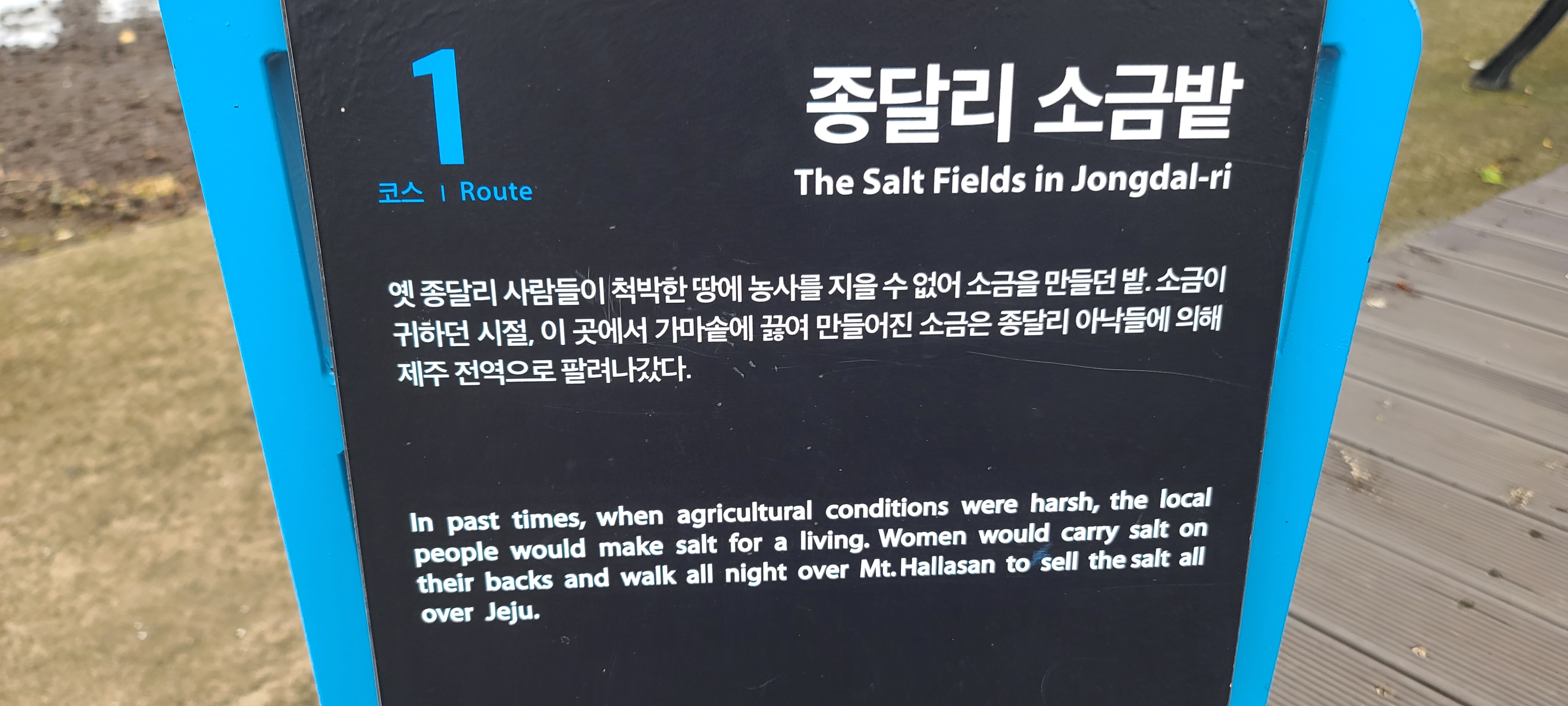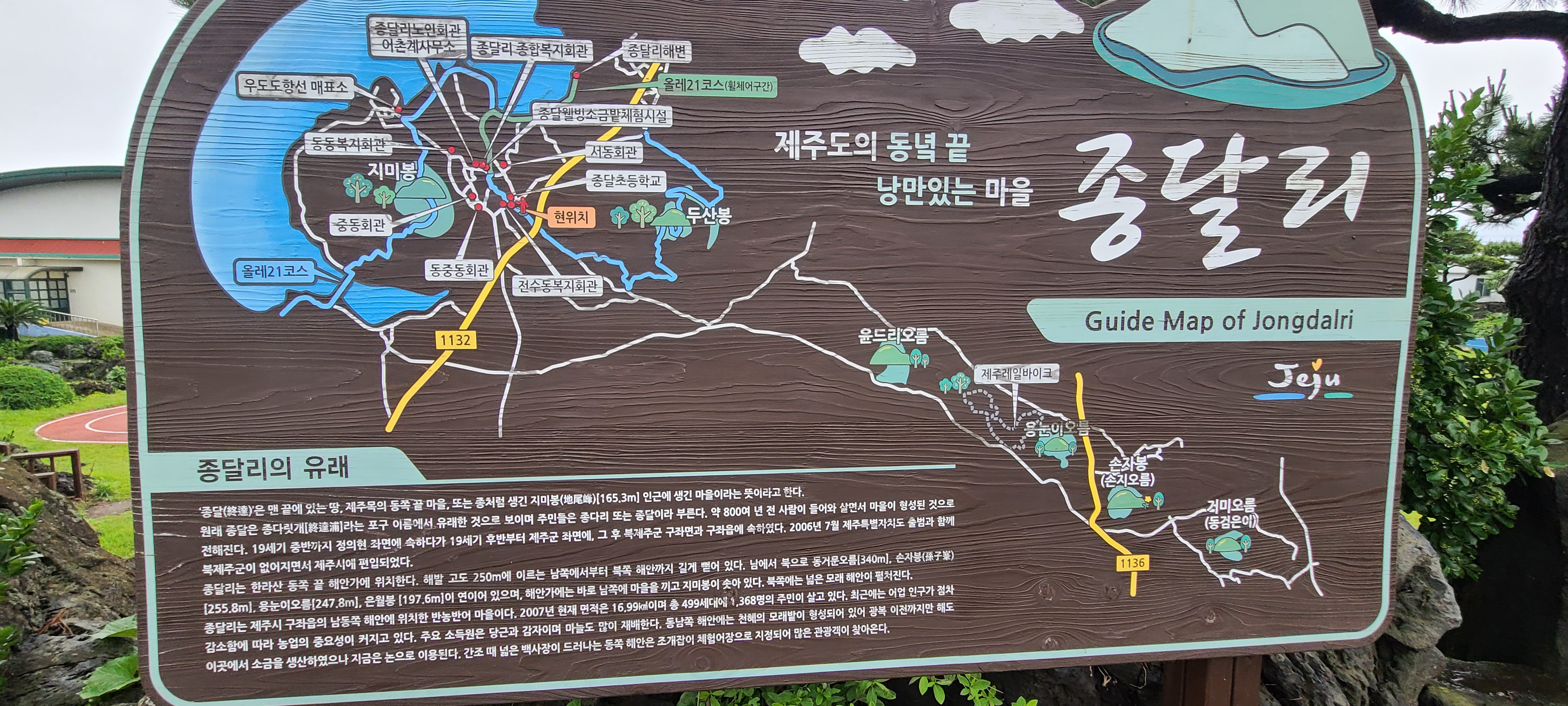 이 팻말을 보니 알겠다. 제주목사가 순시할 때 여기 시흥리에서 시작하여 종달리에서 끝냈다는 점을 고려한 것이군. 그래서 21코스 마직막을 종달리에서 끝맺음을 한 것이군.始興과 終達이라