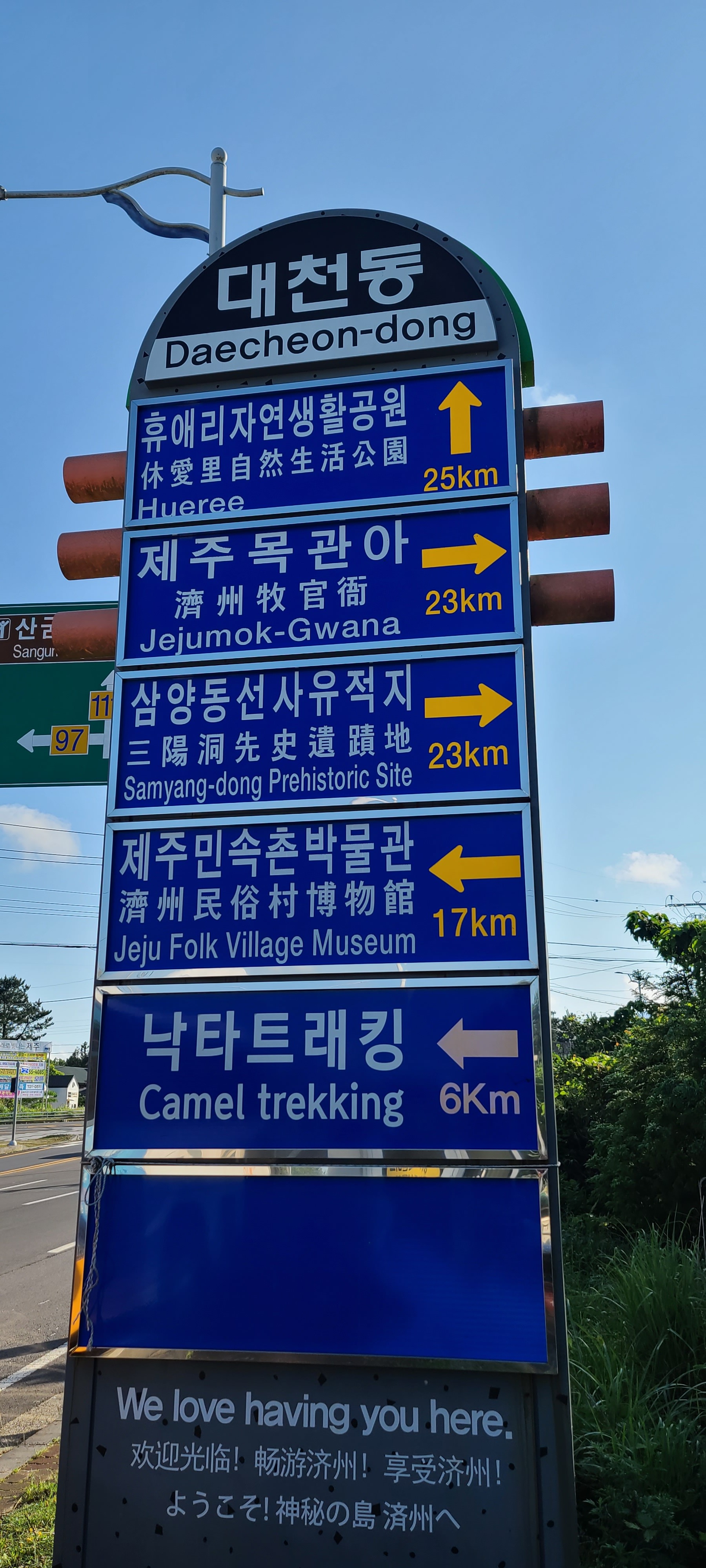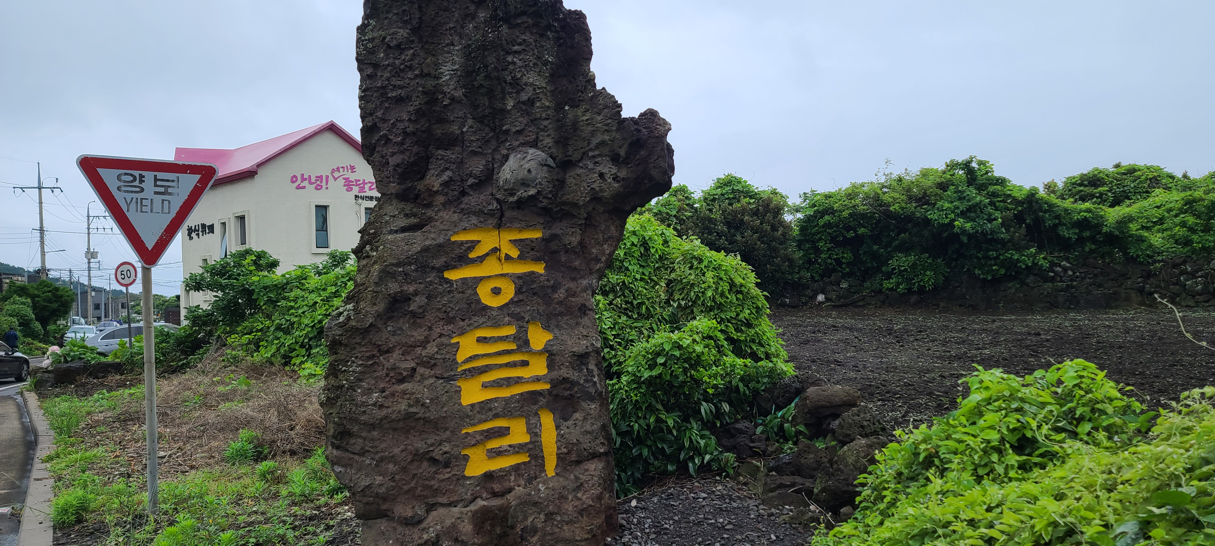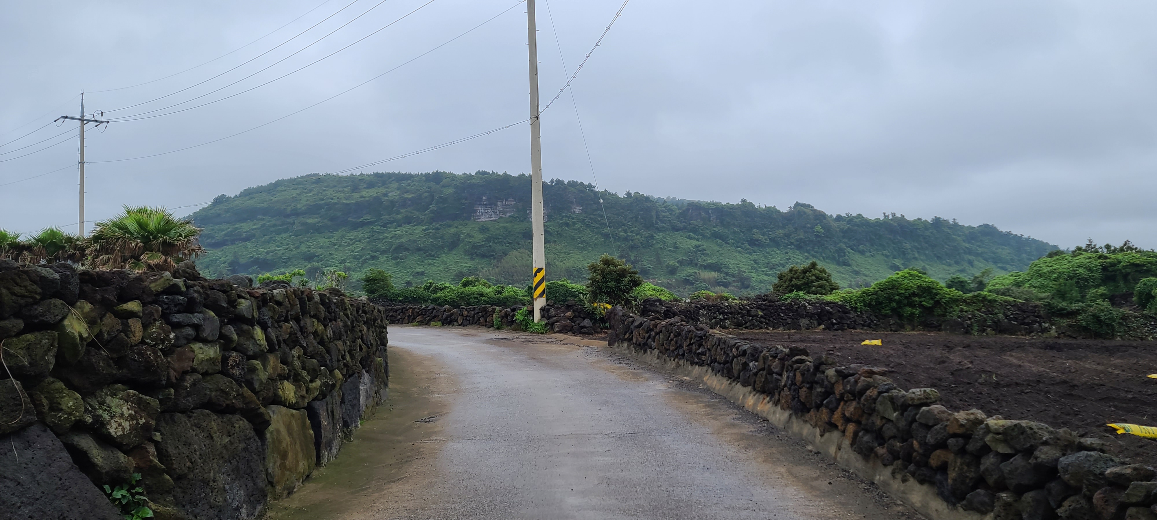 두산봉을 향해 올라가니 제주 시골길의 전형적인 모습이 나타난다.