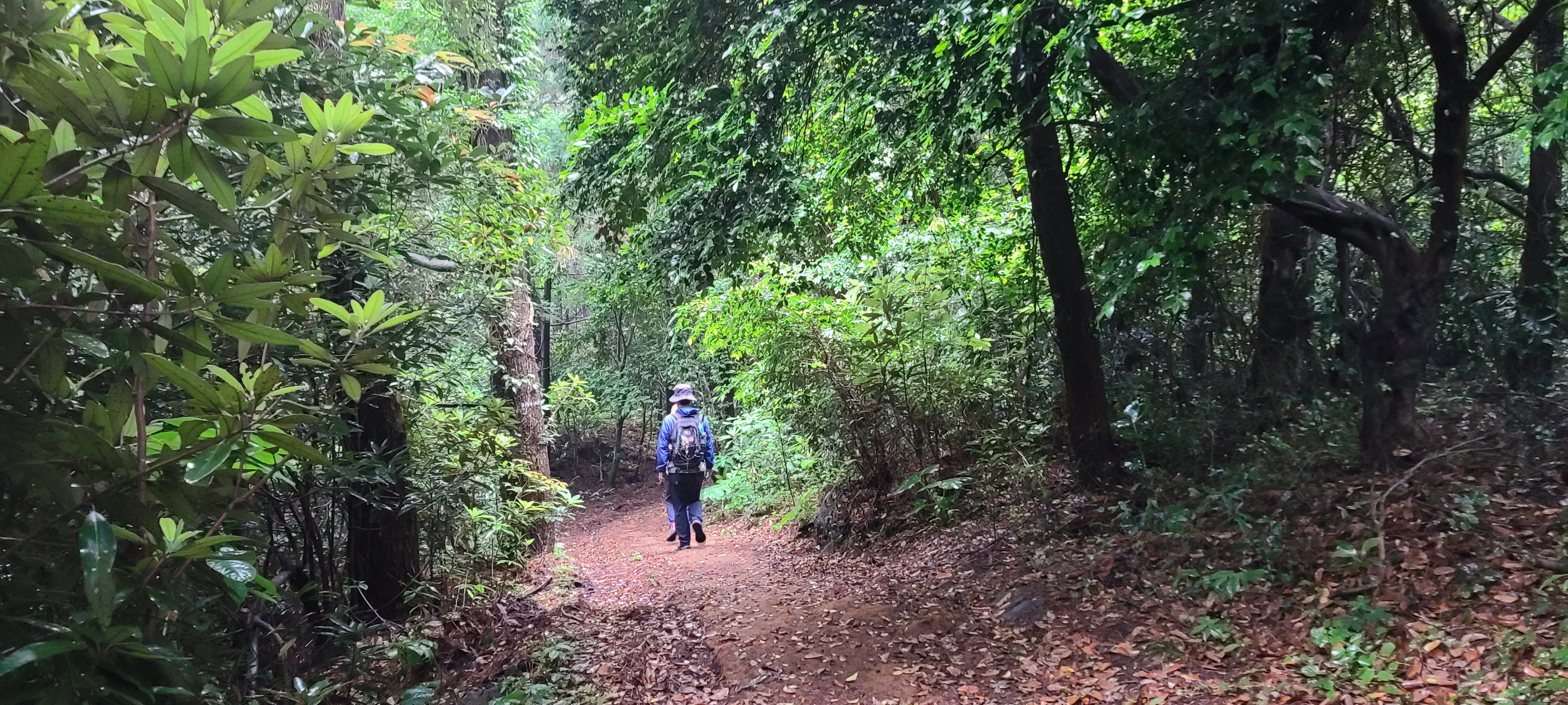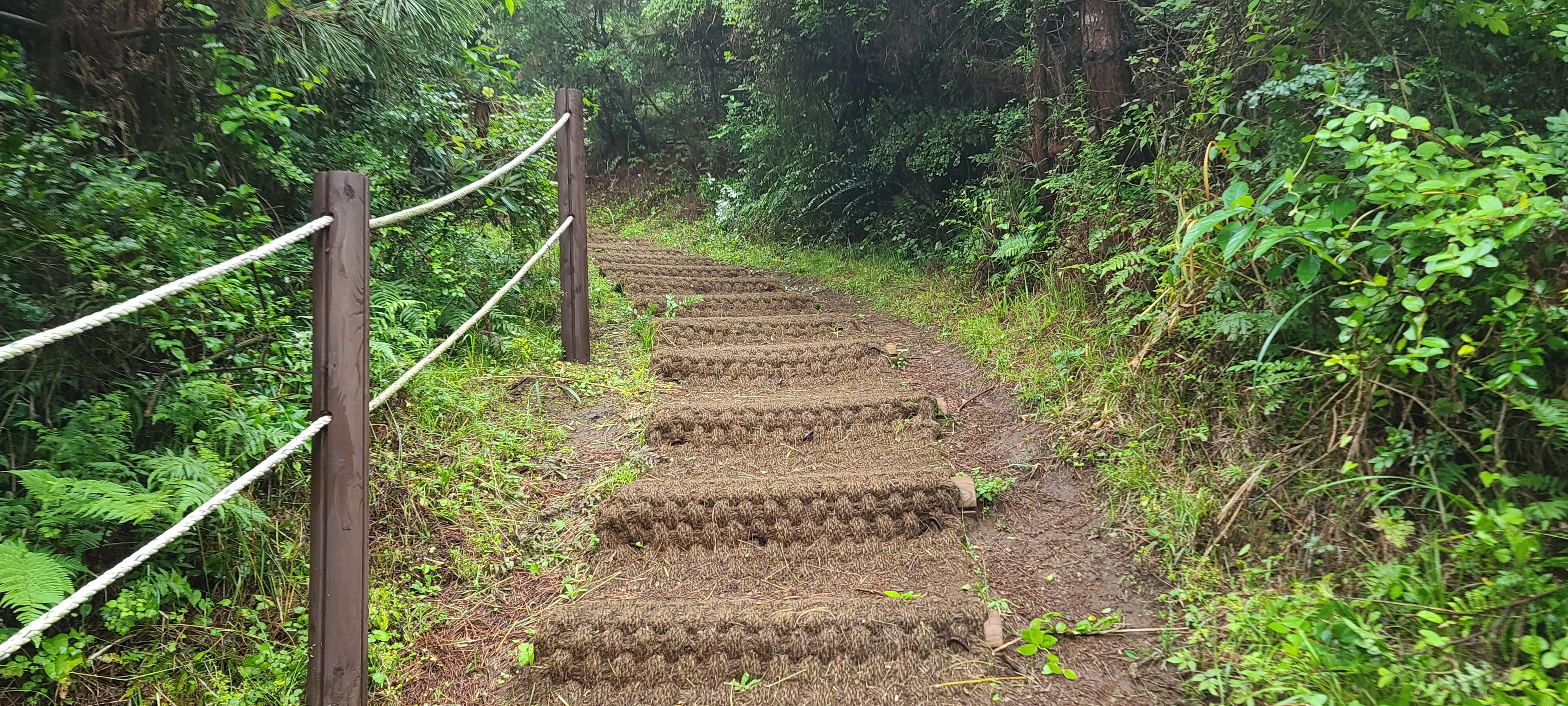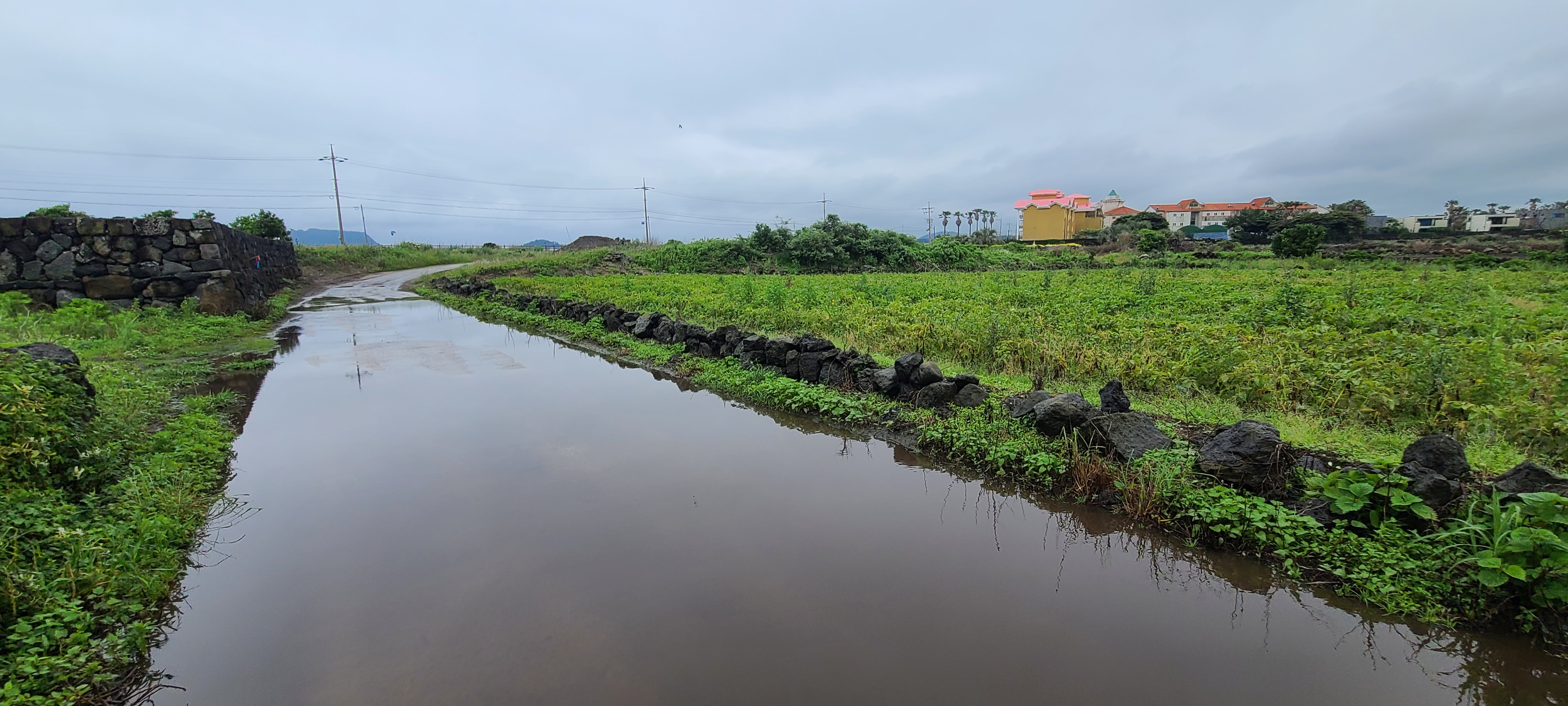 비가 올레길을 방해한다. 시멘트길이 아니라면 틀림없이 물은 어디로 사라졌을 것이다. 제주도에 개천 등 하천이 잘 보이 않는 것은 지하로 쉽게 스며드는 현무암 때문일 것이다.