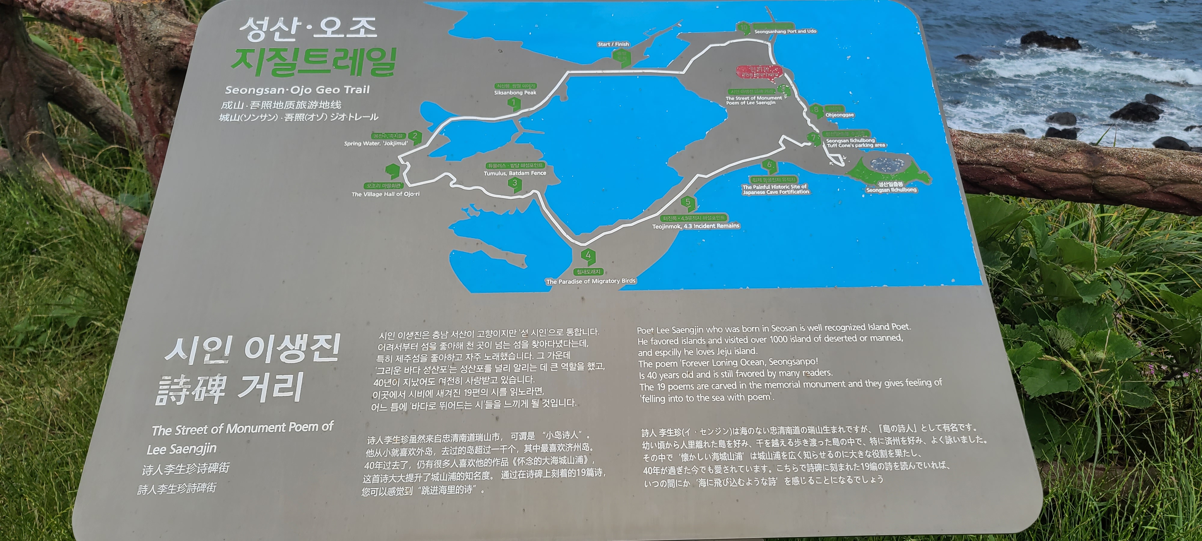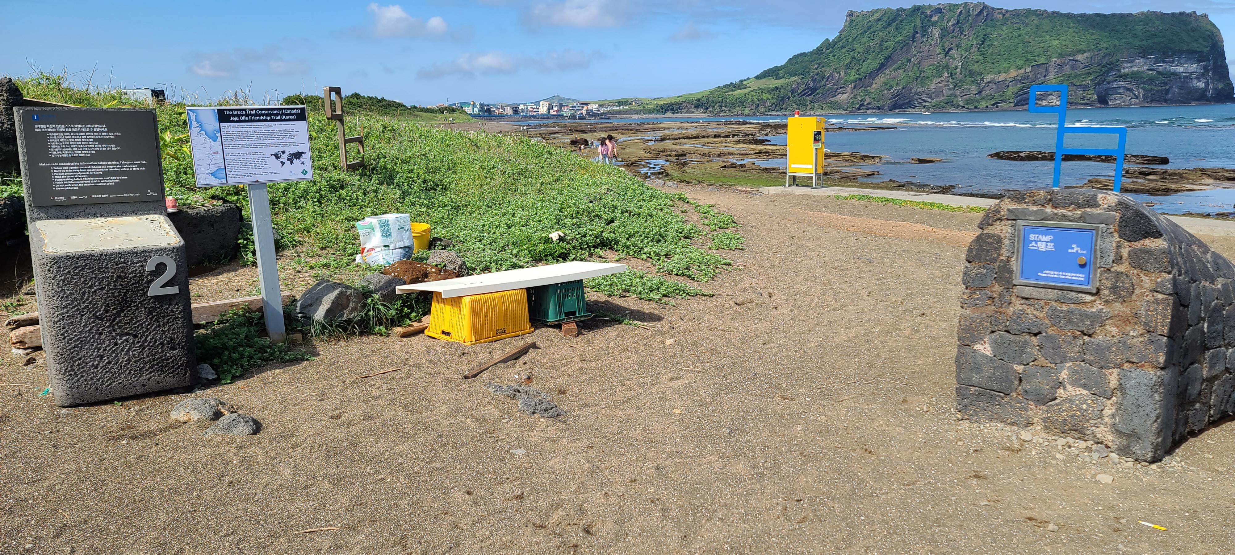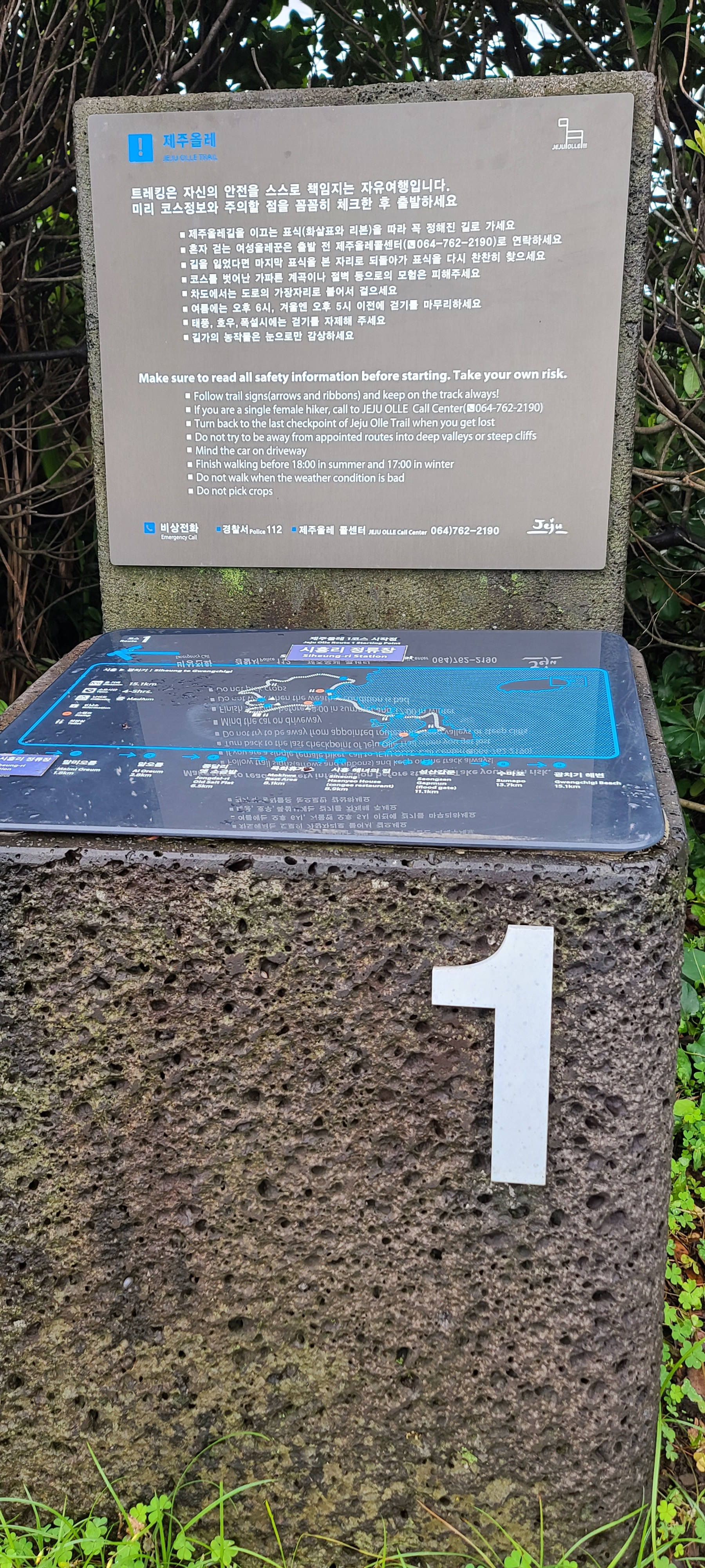 제주도에 도착한 후 최고 가고싶은 곳은 한라산이었지만 성판악코스와 관음사코스는 예약을 해야하기에 섣불리 덤불 수 없어 올레길1코스에 도전한다. 제주도는 90년대에 한번 와본 후 낯설어서 1코스 기점인 시흥리 초등학교 부근까지는 매제의 도움을 받고 출발한다. 빗방물이 흩날리지만 호기심 가득한 마음으로 출발한다. 1코스를 시흥리에서 시작하는 것은 왜일까? 속으로 성산일출봉이 있기 때문이라고 생각했는데...