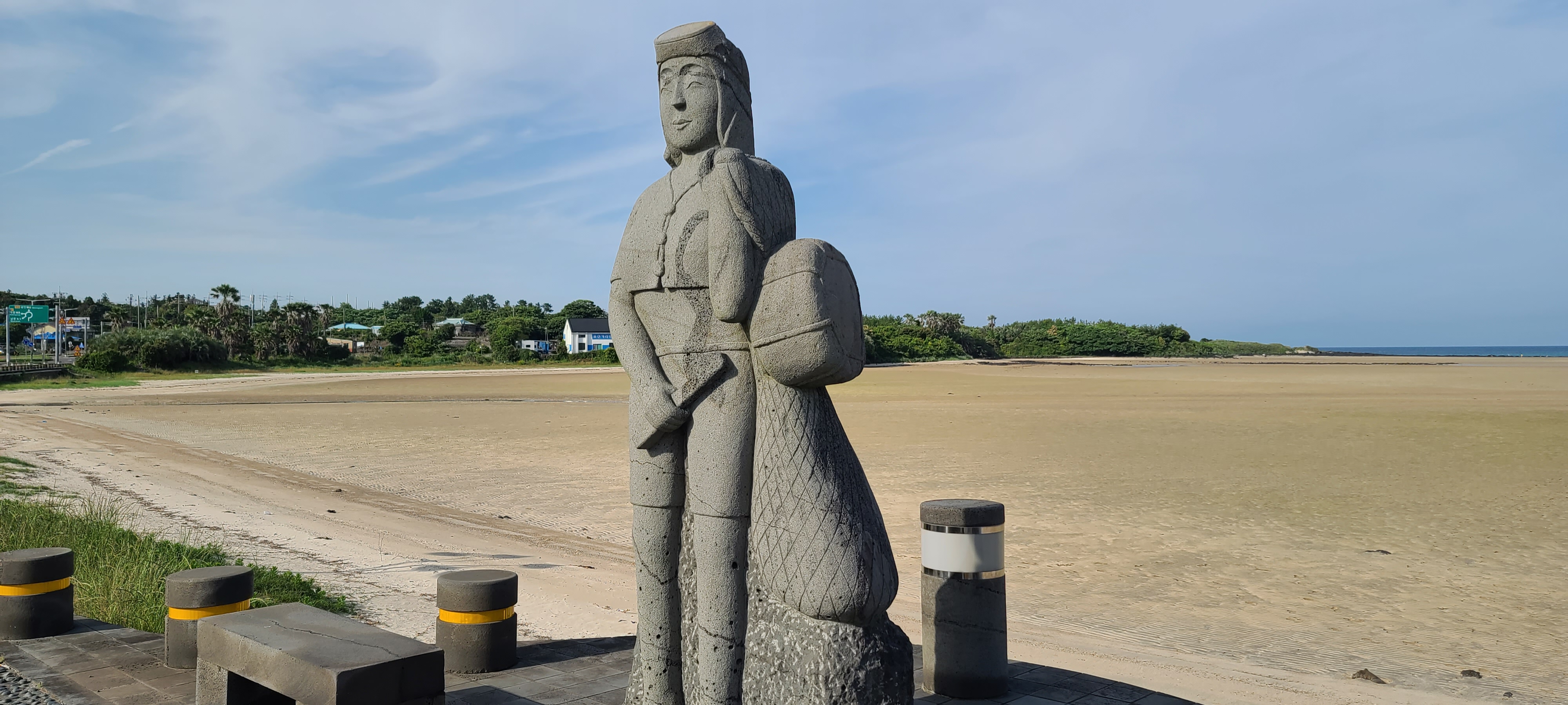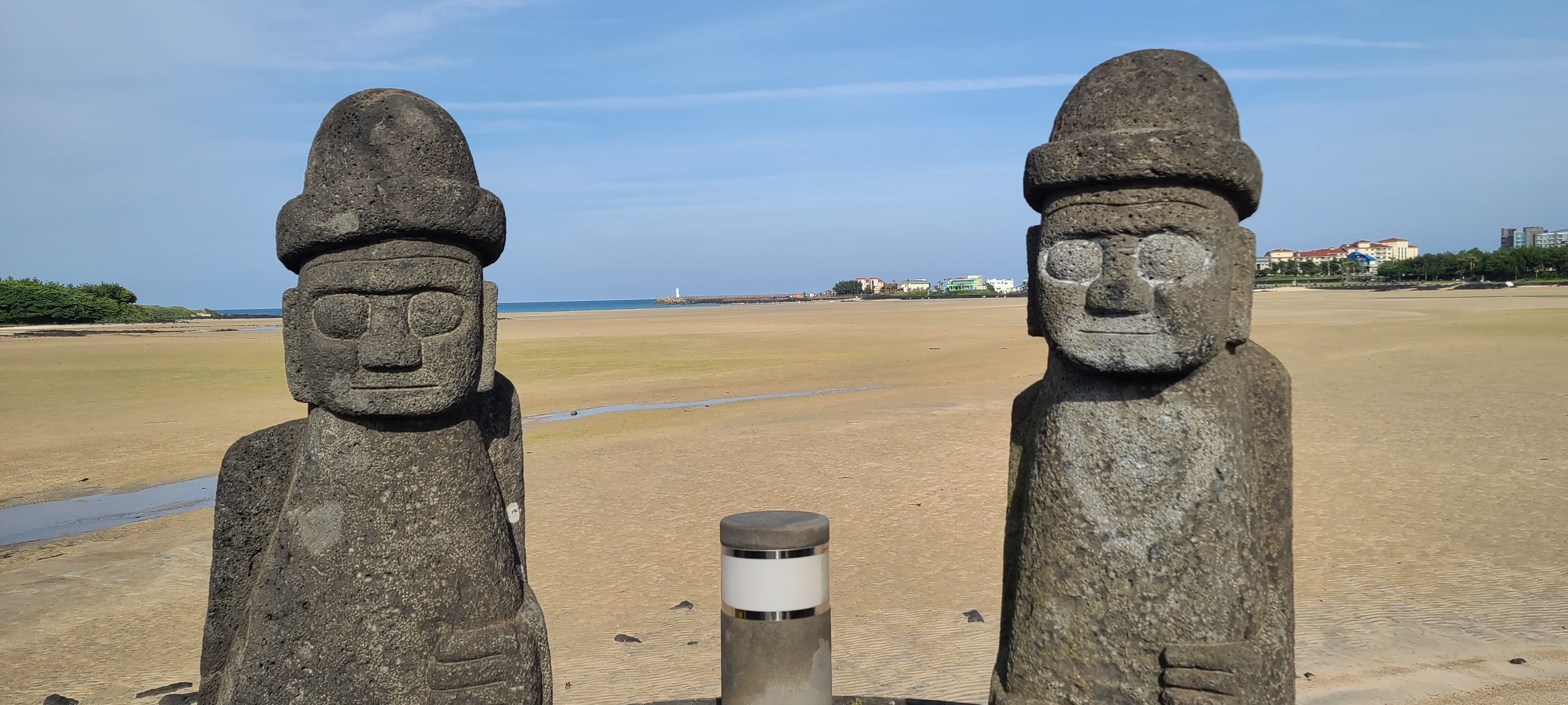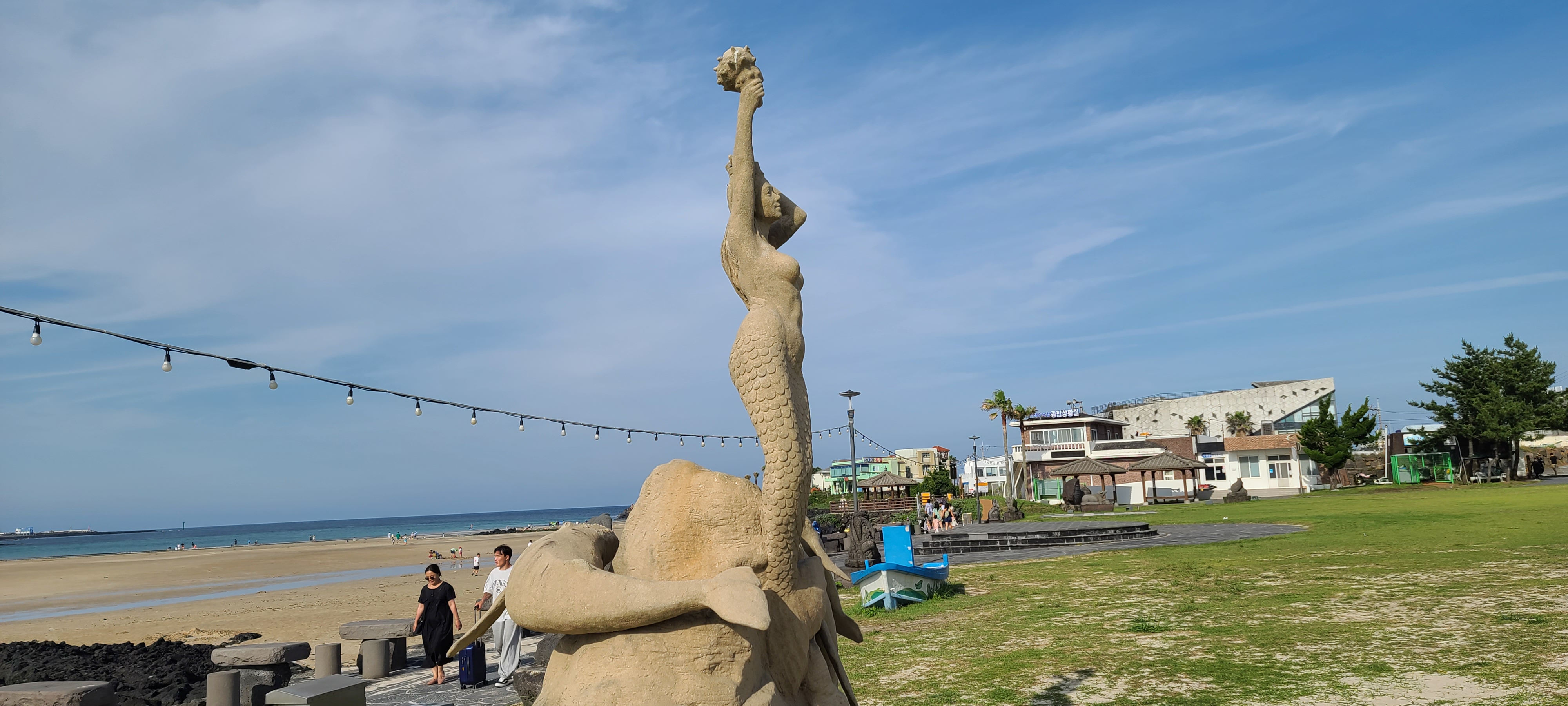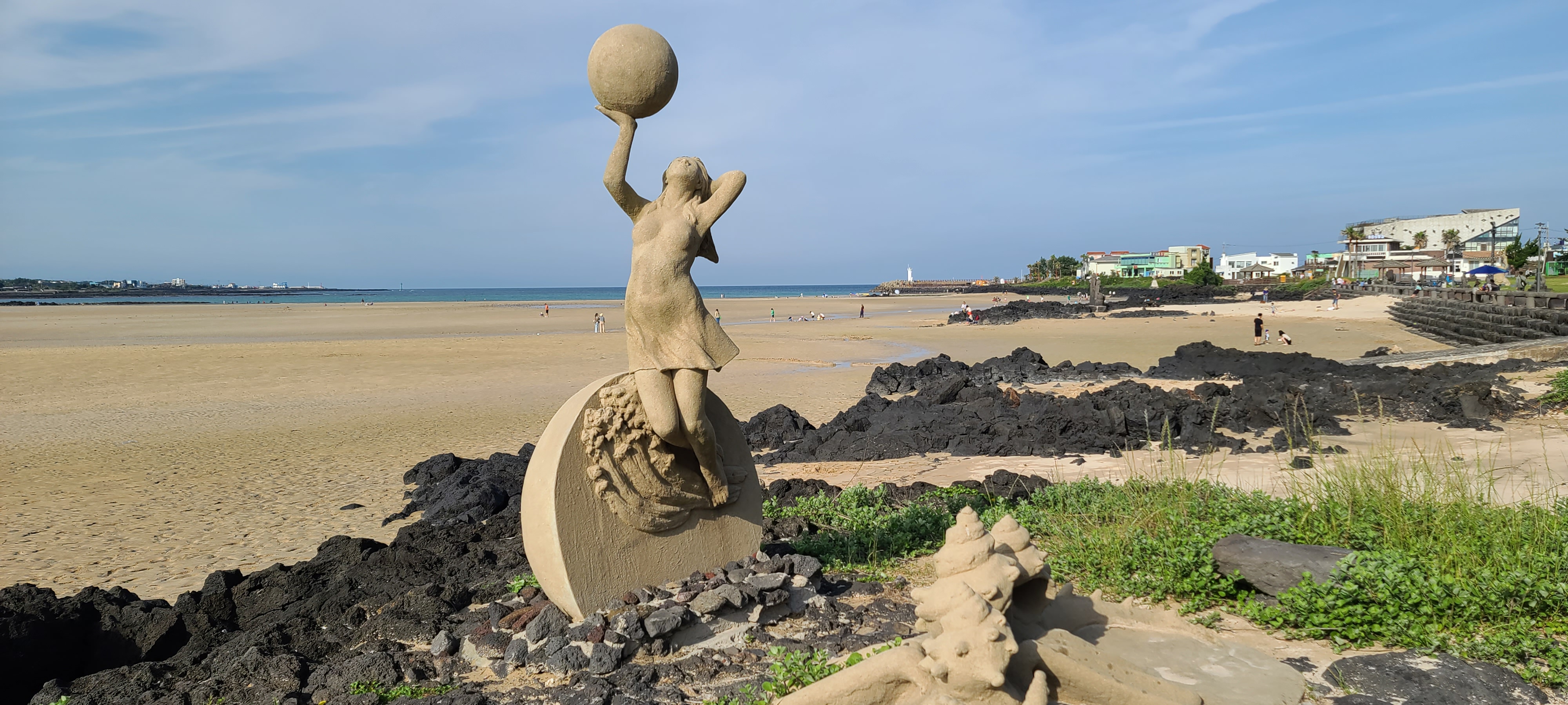 온평리 혼인지마을의 해변 조각품을 구경하고