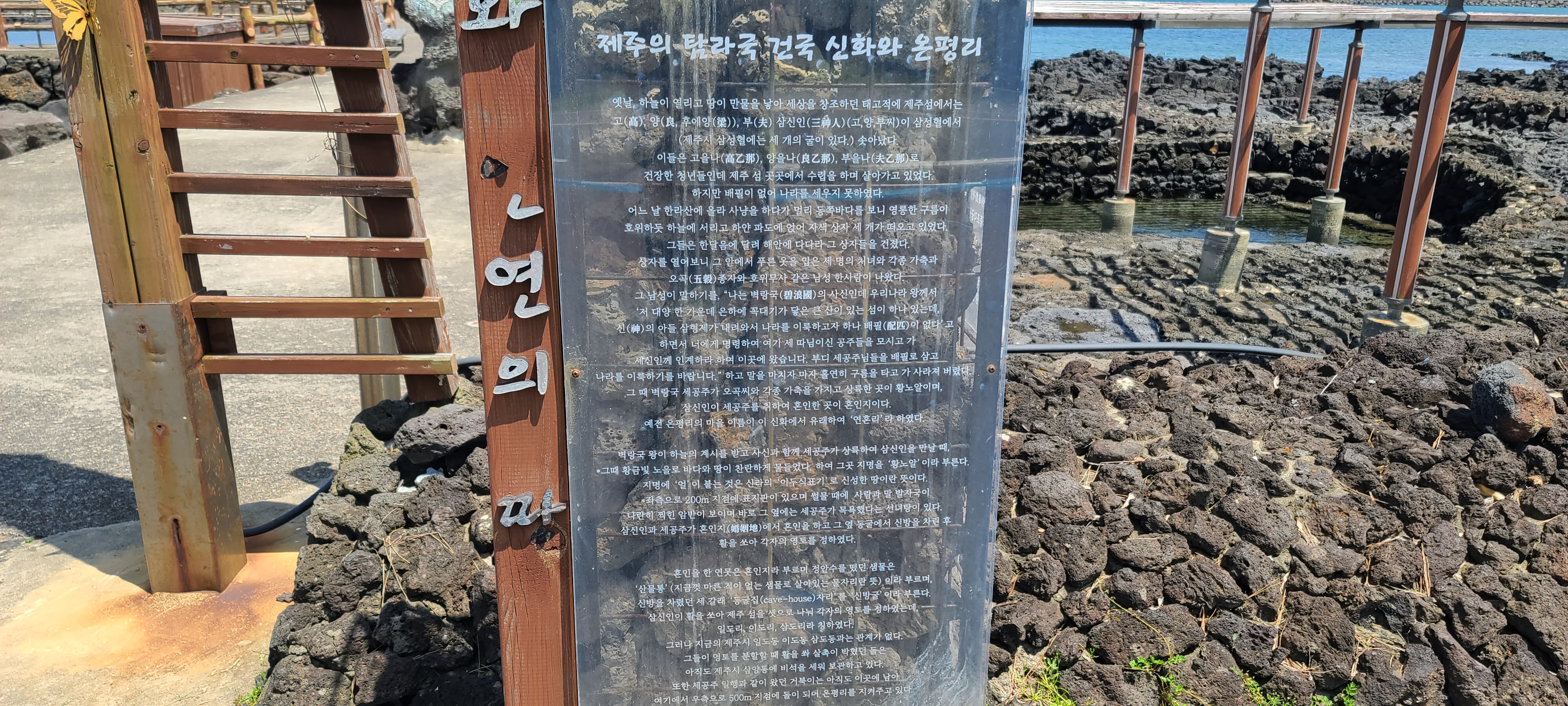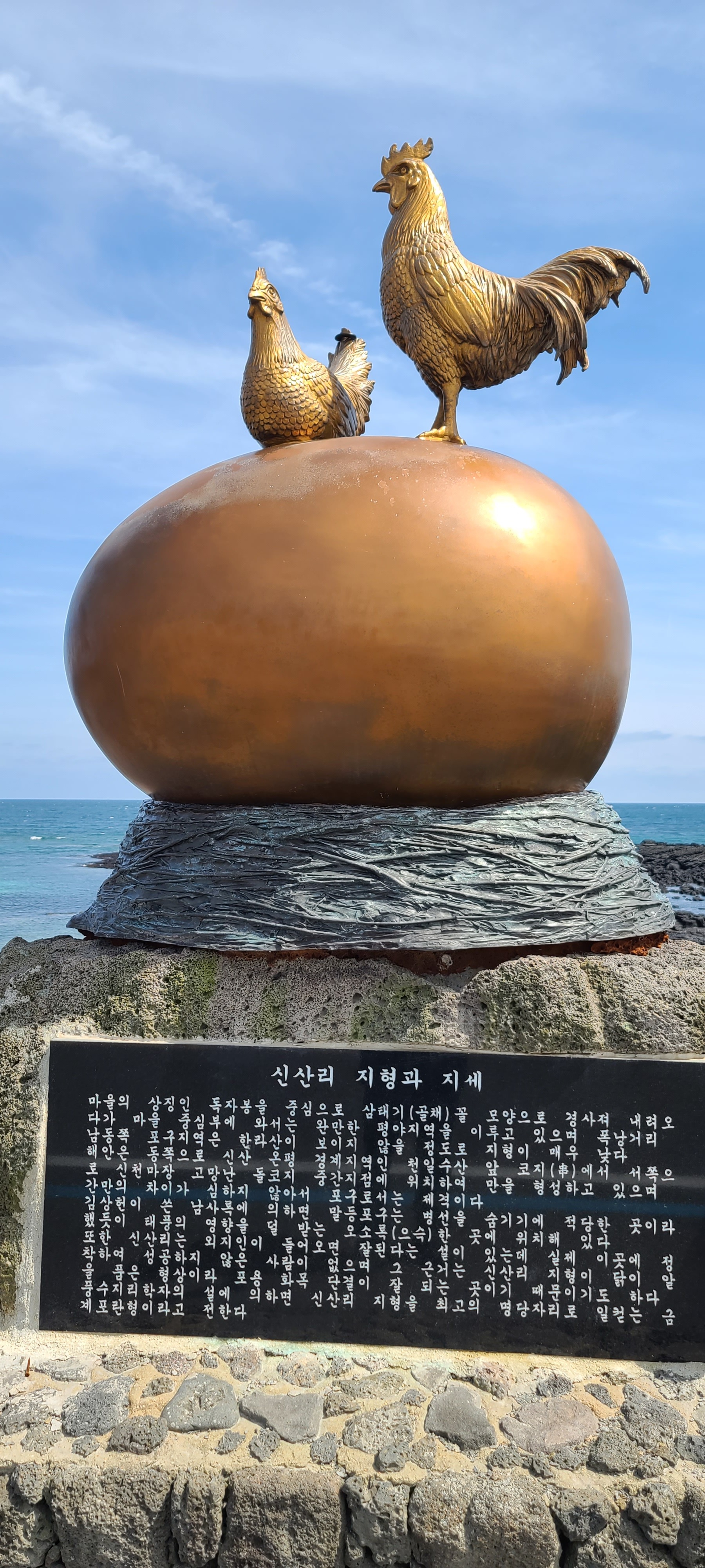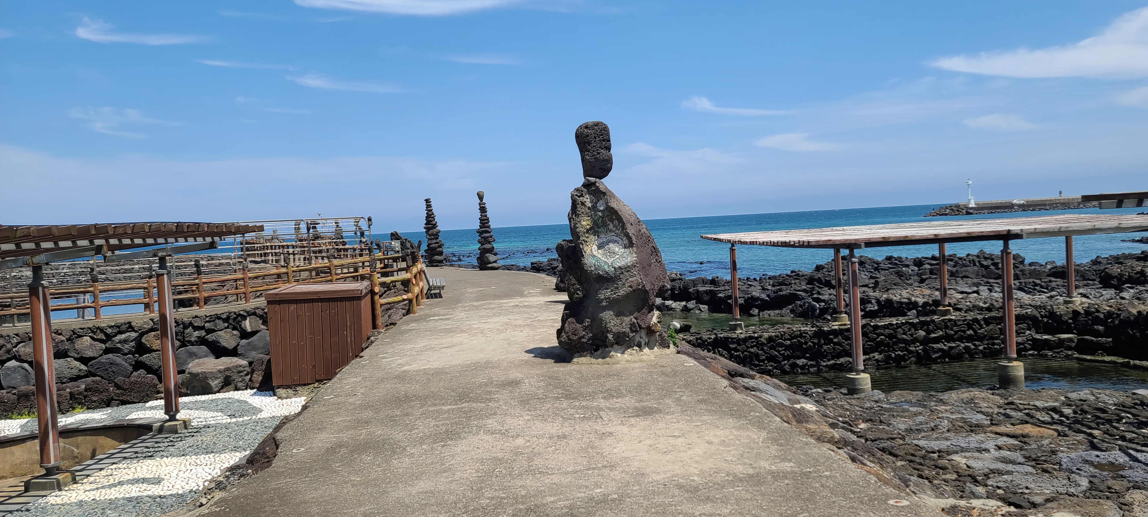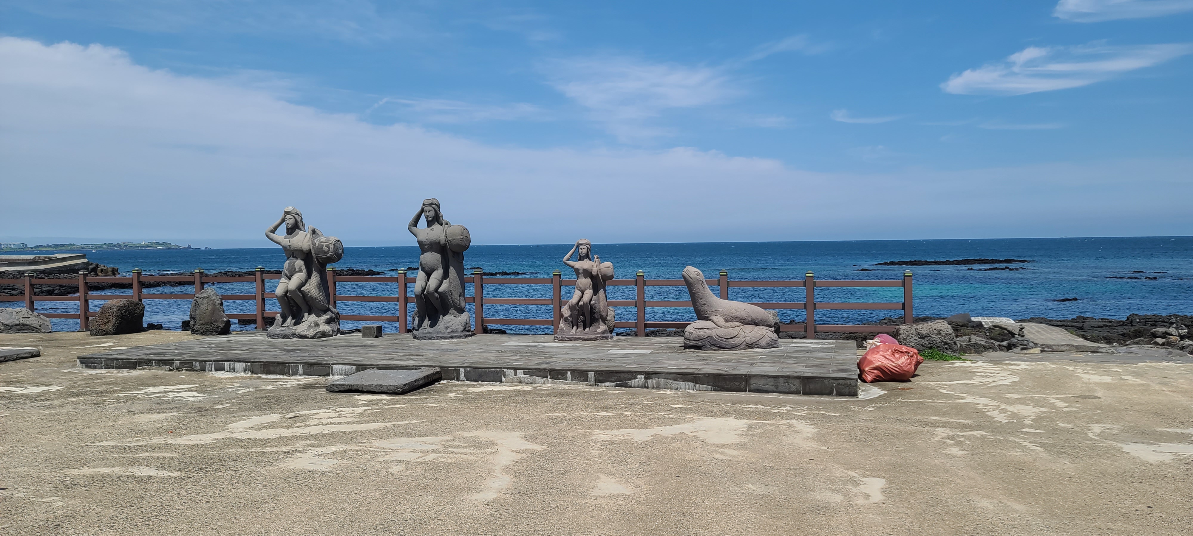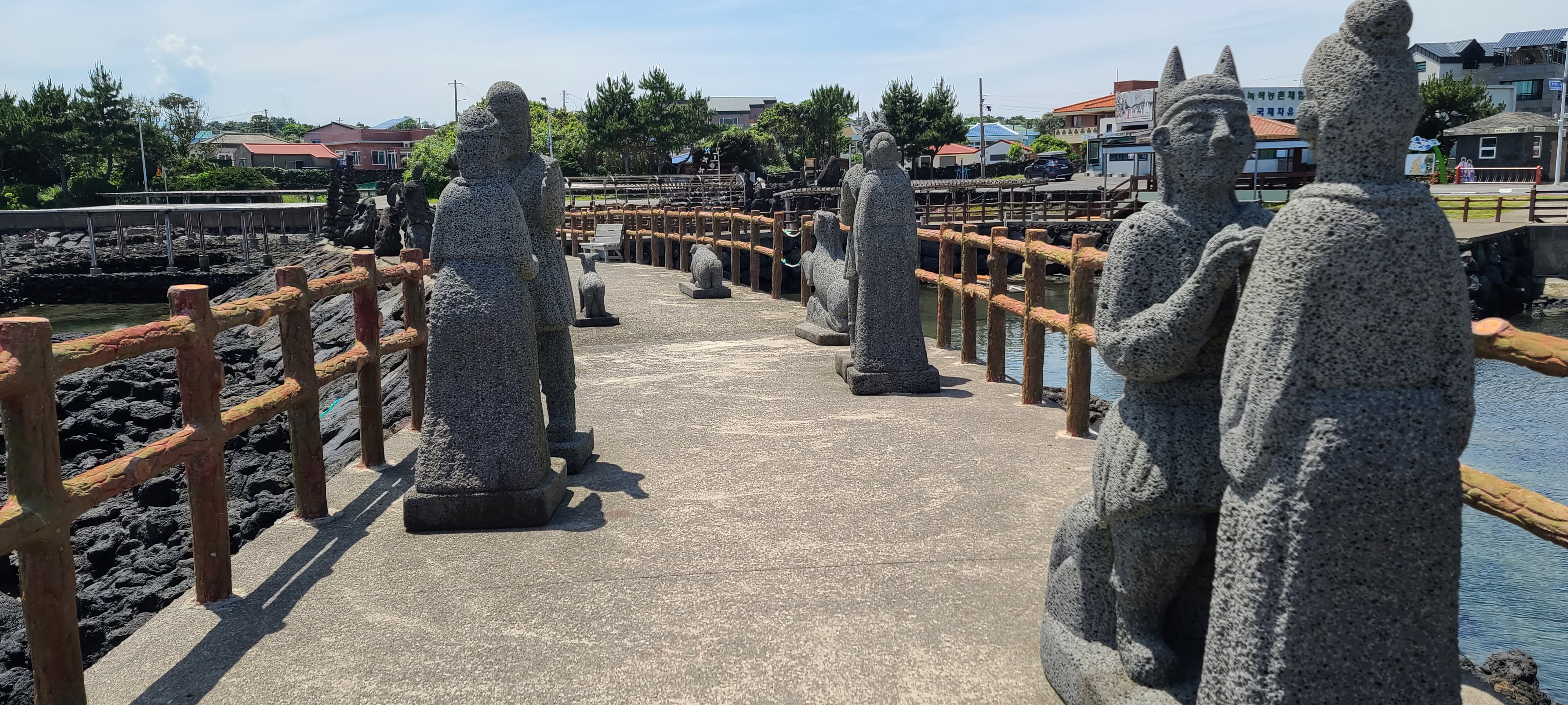 온평리 혼인지마을의 해변 조각품을 구경하고