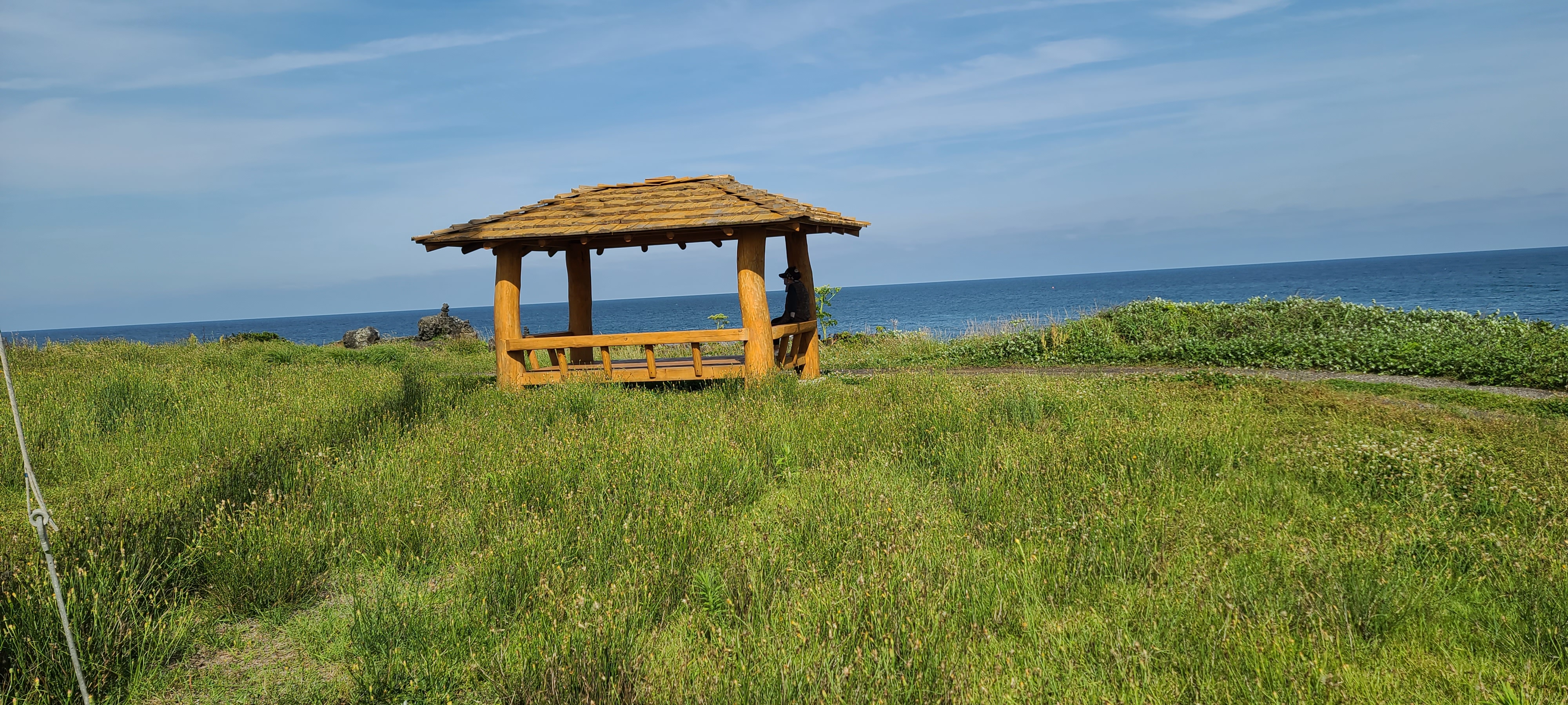 정자에서 물 한잔 마시고 해변을 다시 걷는다.