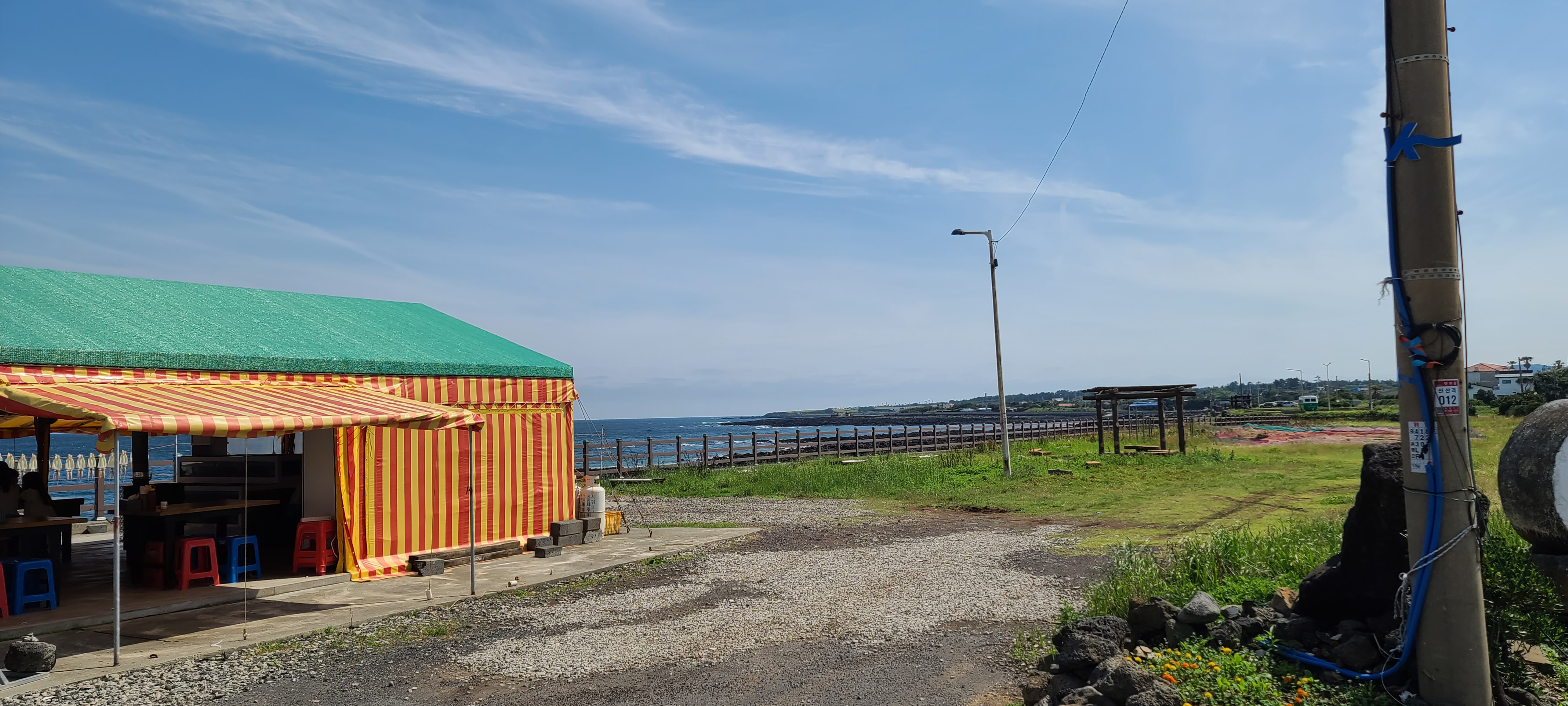 신산포구를 지나 간이 식당 앞 데크길로 간다.