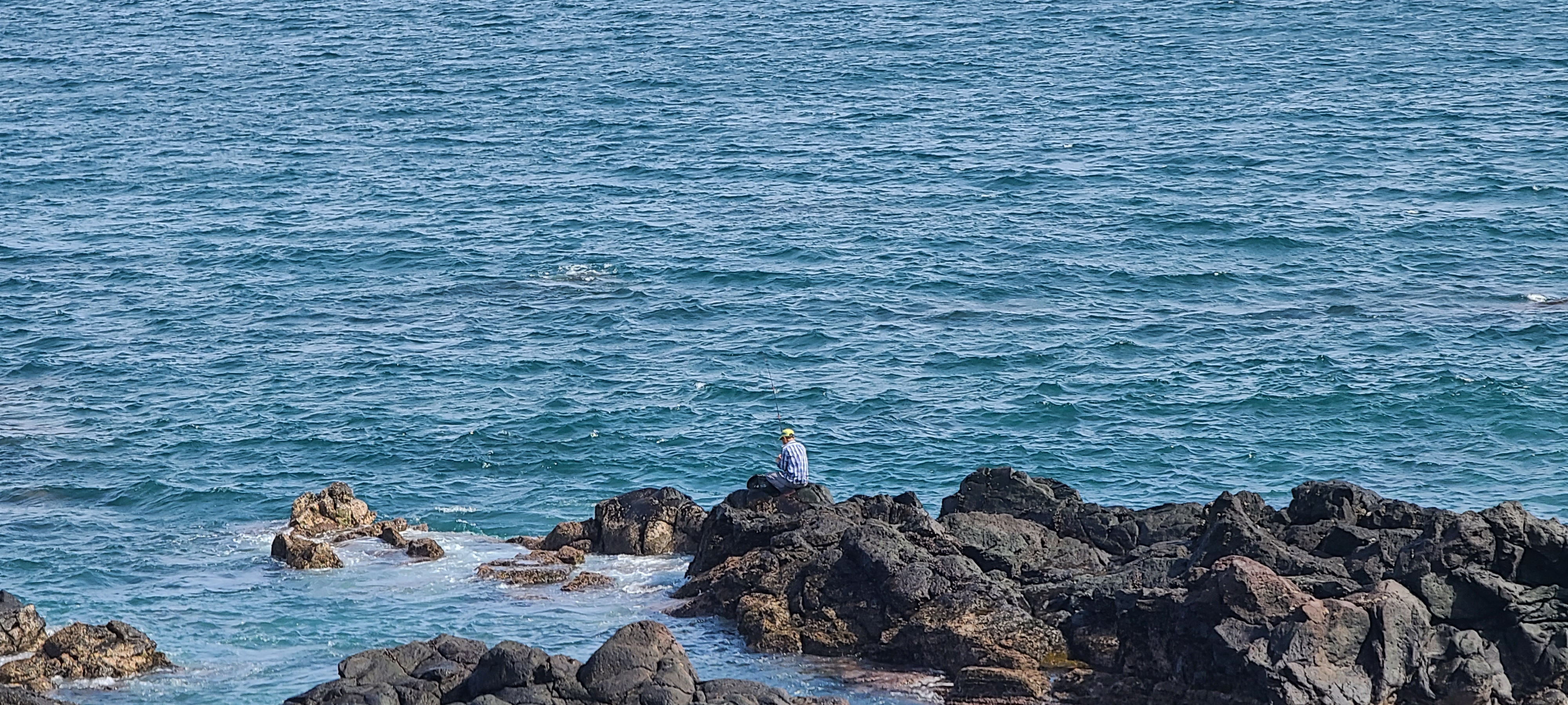 검은 해변 멀리 낚시하는 모습도 보인다.