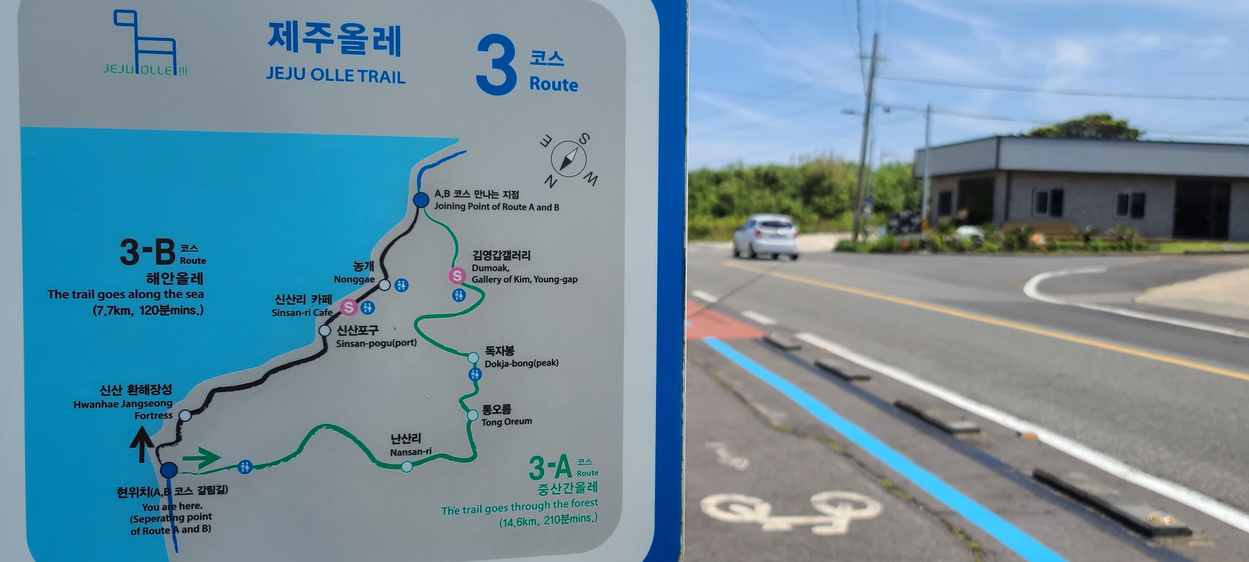 해변가인 3-B코스로 진행한다. 이어 가지 않았다면 3-A의 길을 갔을 것이다.
