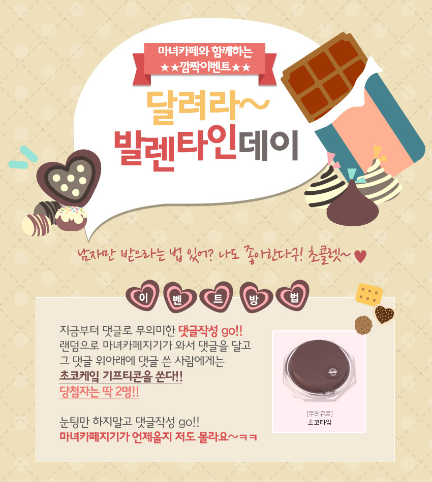 눈팅만 하지말고 같이 즐겨서 초코케잌 먹어요~ 마녀들![]()
