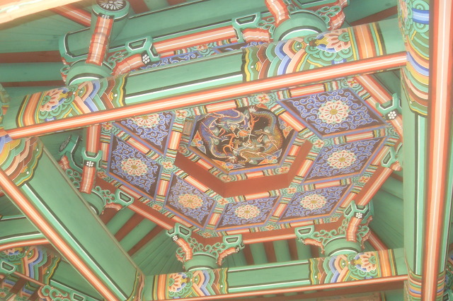 존덕정 천장 중앙에는 쌍룡이 여의주를 갖고 노는 그림이 있는데 이는 왕권의 지엄함을 상징한다?