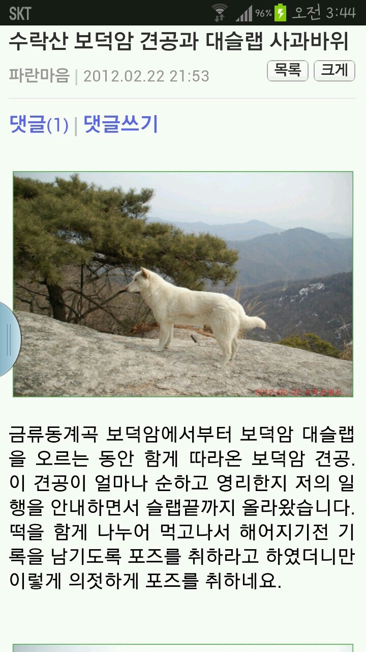 [스크랩] [[추천기도터]]수락산 기도터 작성자우주최강마녀|작성시간13.10.25|조회수492 목록 댓글 3 글자크기 작게가 글자크기 크게가 당주 010-8477-0455경기도 남양주시 별내면 청학리 산102-2번지 다음검색 스크랩 원문 : 올바른 무속인들의 모임 (사단법인 한국민속무속보존총연합회) 현재 게시글 추가 기능 열기 북마크 공유하기 신고 센터로 신고 댓글 댓글 3 댓글쓰기 답글쓰기 댓글 리스트 작성자파도소리 | 작성시간 13.10.25 와~아 함 가보고싶네요 기도하면 소원이 다 이뤄질것같아요 정보 감사합니다 작성자산지기 | 작성시간 13.10.25 아하~~~^^ 작성자우주최강마녀 작성자 본인 여부 작성자 | 작성시간 13.10.28 허공 폭포기도랑 칠성기도 좋아요^^풍산이가 기도갈때 길도 안내해주고 옆에서 지켜주기도 합니다^^ 댓글 전체보기