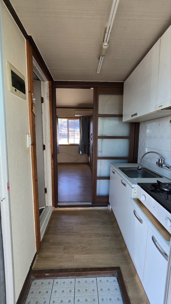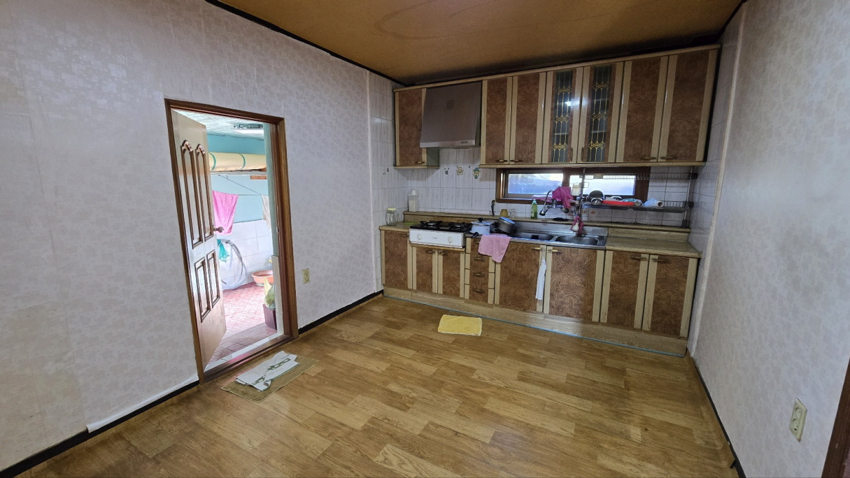 주택 내부의 모습인데요. 방2, 화장실1, 주방, 다용도실로 되어 있습니다.