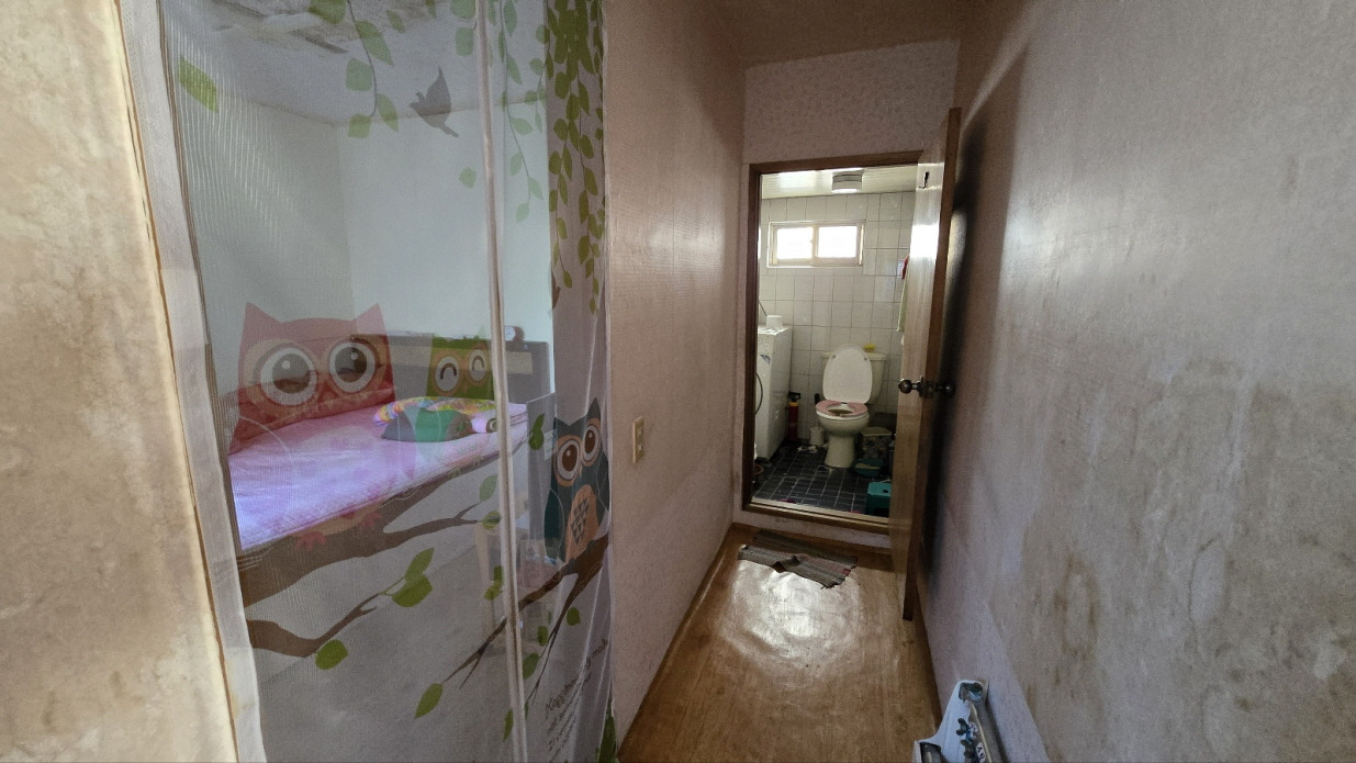 위 사진은 현관으로 들어오면 정면쪽 작은방과 화장실의 모습입니다.