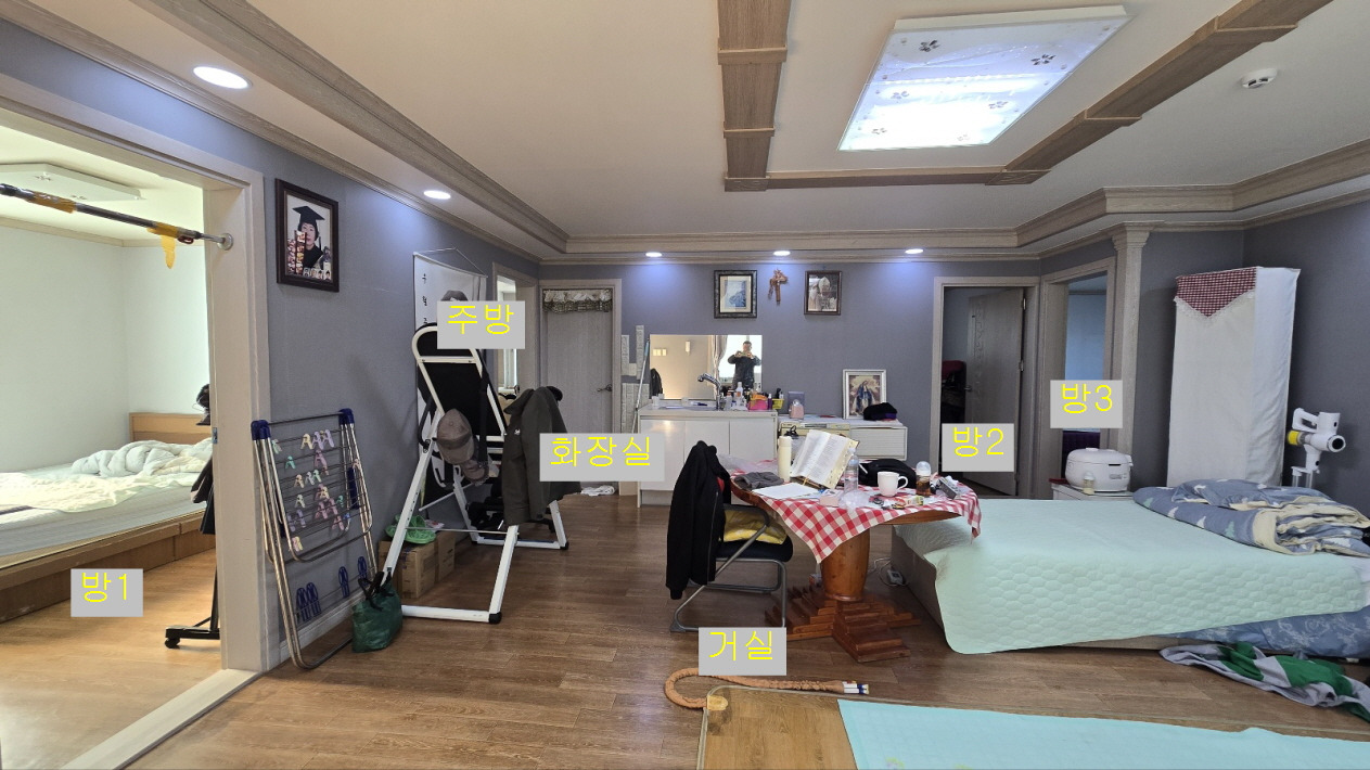 위 사진은 작은방에서 바라본 현관쪽 거실의 모습입니다.