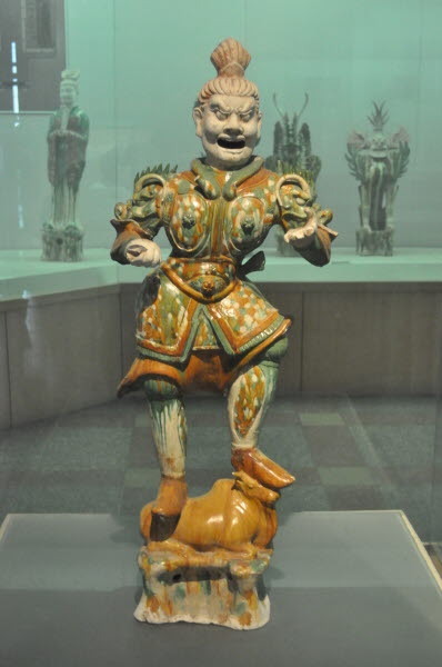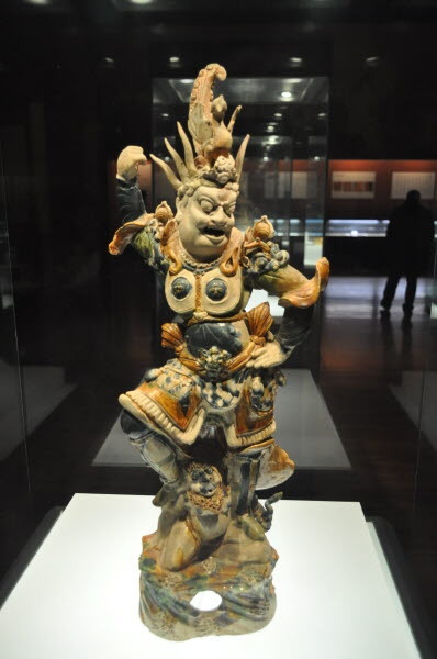 마지막으로 위의 사진은 섬서성박물관에서 촬영한 것입니다. 서안 서교 중보촌 당묘에서 출토된 것입니다. 역시 당삼채로 제작된 천왕용입니다.