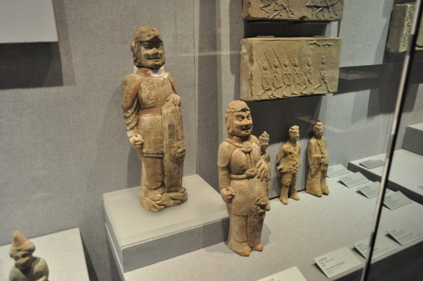 위의 사진은 제가 하남성박물관에서 촬영한 것입니다. 이 사진에서 보이는 비교적 큰 크기의 도용 중 왼쪽 것이 1971년 안양시 홍하둔 범수묘 출토된 무사용이며, 오른쪽의 것이 탕음현 마가구 출토 무사용입니다. 둘 다 북조의 유물이며, 특히 왼쪽의 유물은 북위 제평 6년(575)의 유물입니다.