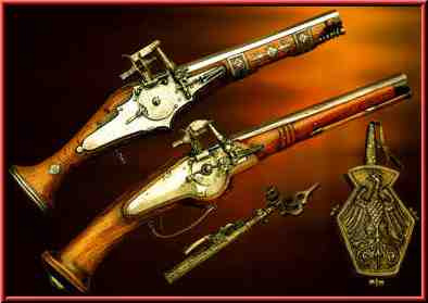 세 번째는 부싯돌식 격발 총(flintlock) 이라고 부르는 것이었습니다. 이 형태의 가장 초기 버전인 스냅펀스 (snaphance)라고 하는 형태였는데, 이것은 부싯돌을 철과 마찰시켜 내는 불꽃으로 점화시키는 형태였는데, 회전식 격발 총에 비해 좀 더 간단한 구조였고, 가격도 약간은 싼 편이었지만 이 ‘고급’ 기술은 오직 기술 선진국인 네덜란드에서만 이용되었습니다. 그러니, 30년 전쟁 당시의 대부분의 보병총은 화승총, 기병총은 회전식 격발 총으로 이해하시면 될 것 같습니다.