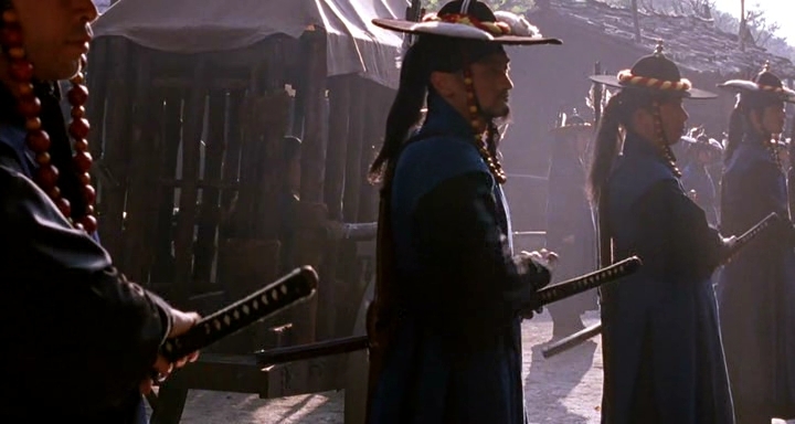 이런 형태가 되어있기 때문에.. 동개의 형태에서나 착용에서나 고증은 완벽하게 빗나갔음을 알수 있습니다. 영화속에서의 동개는 뒤로서 빼는 형태로서 당시 조선에서 일반적으로 착용하는 동개형태와는 전혀 다른 모습을 보여준다는 점이 되겠습니다. 칼의 착용 역시 보시면 다들 틀렸다는게 눈에 보이시지요?^^ 또한 당시 사부들의 경우 환도 착용에 있어서 대환도 보다는 소환도나 중환도의 착용을 선호했다고 합니다. 위 영상처럼 긴 왜도가 아니라요.