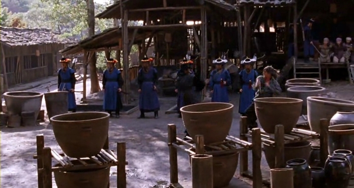 바로 이들이 찬 검은 왜도입니다. 일본도입니다. 물론 고려시대부터 왜도가 수입되어서 운용되었다는 점을 볼때 조선초기인만큼 일본도를 착용하여 운용한게 고증과 크게 다르다 보기는 어렵더라도.. 최소한 환도나 운검 혹은 쌍수도가 다수였다면 좋았지 않았을까요? 물론 운검의 경우 예식용이고 쌍수도의 경우 척계광이 왜도에 대응하기 위해 만들어졌다는 점과 당시 환도는 임진왜란 이후 길이가 길어졌다는 점을 고려한다면.. (물론 그전에도 소/중/대로 환도가 분류되어 있음)현재 한국인 체형 당시보다 커진 체형에는 긴 왜도가 맞을지 모르나 고증상으로는 조선초기 현재의 환도보다 좀 짧은 형태나 저런 왜도만을 사용한건 좀 맞지 않는 형태가 아닐까 합니다. 차라리 대환도를 사용했다면 그나마라도 조선군의 도운용에서의 모습을 볼수 있었겠지만 말이죠. 더욱이 전원다 왜도이니.. 그것 또한 문제가 아닐수 없다는 것이라 생각합니다.