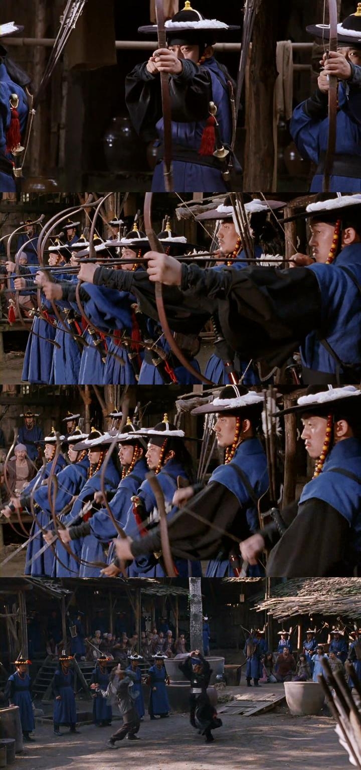 다음은 신기전에서 내금위 병력으로 나온 병력들의 복식입니다. 첫번째 사진이 바로 허준호씨와 그 수하둘입니다.; 개인적으로 대왕세종과 비교한다면.. 전혀 다른 복식인지라.. 당황스럽더군요. 그렇다고 융복이나 구군복을 입은 형태도 아니라는 걸 고려한다면.. 더 그렇죠.