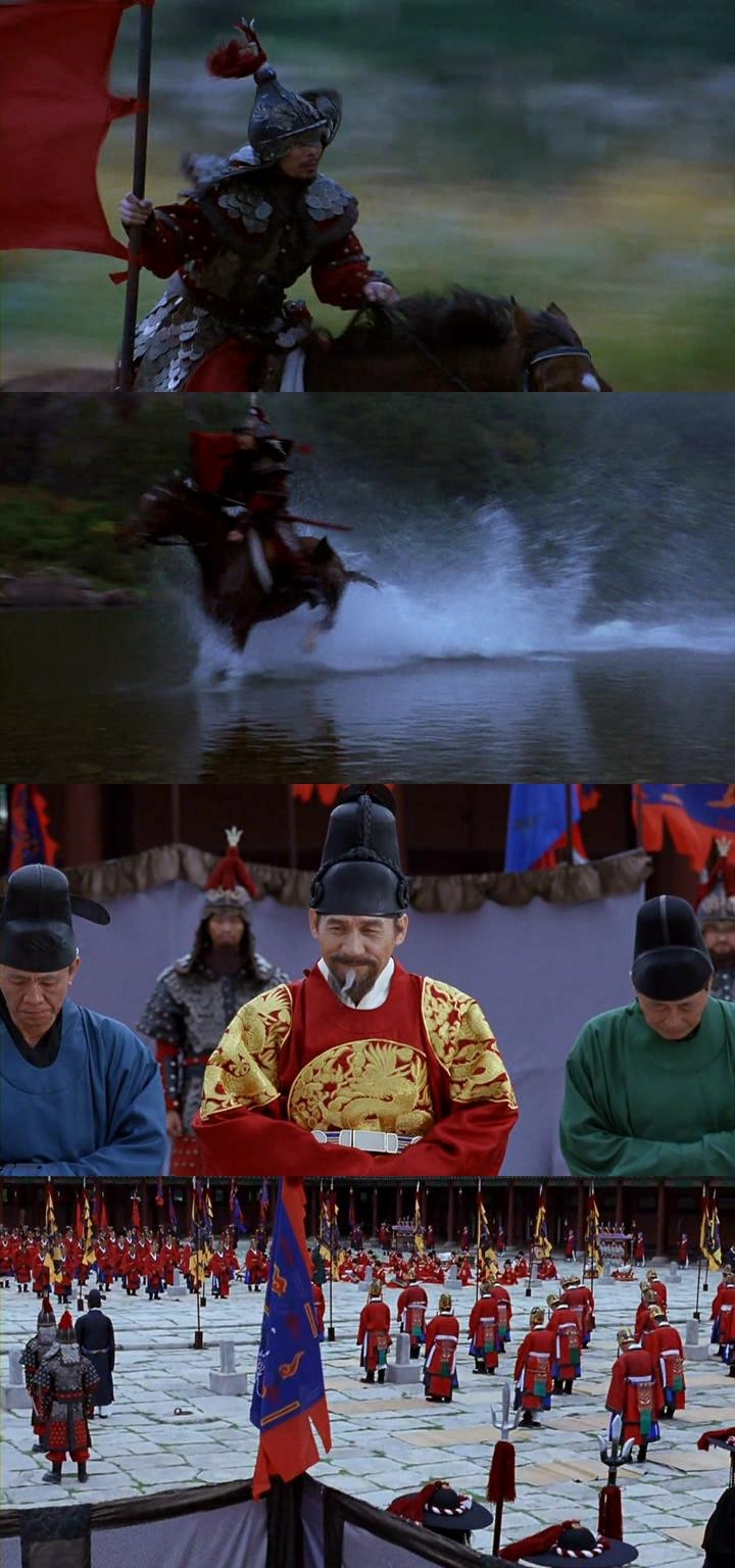 한 이정도 입니다. 이 영화 원래 복식 고증이 엉망인지.. 일개 전령이라 할수 있는 기병이.. 두석린갑에 사용되는 투구(금상감투구)를 쓰는가 하면.. 두석린갑 형태의 갑옷을 입습니다. 제가 기억하기로는 두석린갑의 경우 장식용으로 고위층이 아니면 입지 못했을뿐더라.. 일반 기병들의 갑옷은 두정갑형태로 봐야하거나 조선시대 초 찰갑형태의 모습을 띄어야 하는게 정상이다 보여집니다. 쇄자갑을 입어야 하겠습니다만.. 그런게 없더군요..;;;