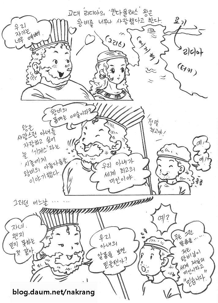 자작만화 세계사 뒷이야기 <애처가>편. 작성자세머리매|작성시간10.10.10|조회수255 목록 댓글 2 글자크기 작게가 글자크기 크게가 참고문헌 헤로도토스 역사 다음검색 현재 게시글 추가 기능 열기 북마크 공유하기 신고 센터로 신고 댓글 댓글 2 댓글쓰기 답글쓰기 댓글 리스트 작성자麗輝 | 작성시간 10.10.10 참 어이없는...ㅋㅋㅋ 이런 역사가 또 있었군요~ 작성자미주가효 | 작성시간 10.10.11 헐... 이런. 댓글 전체보기