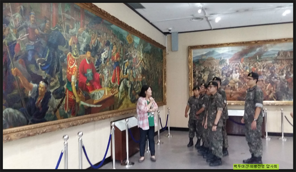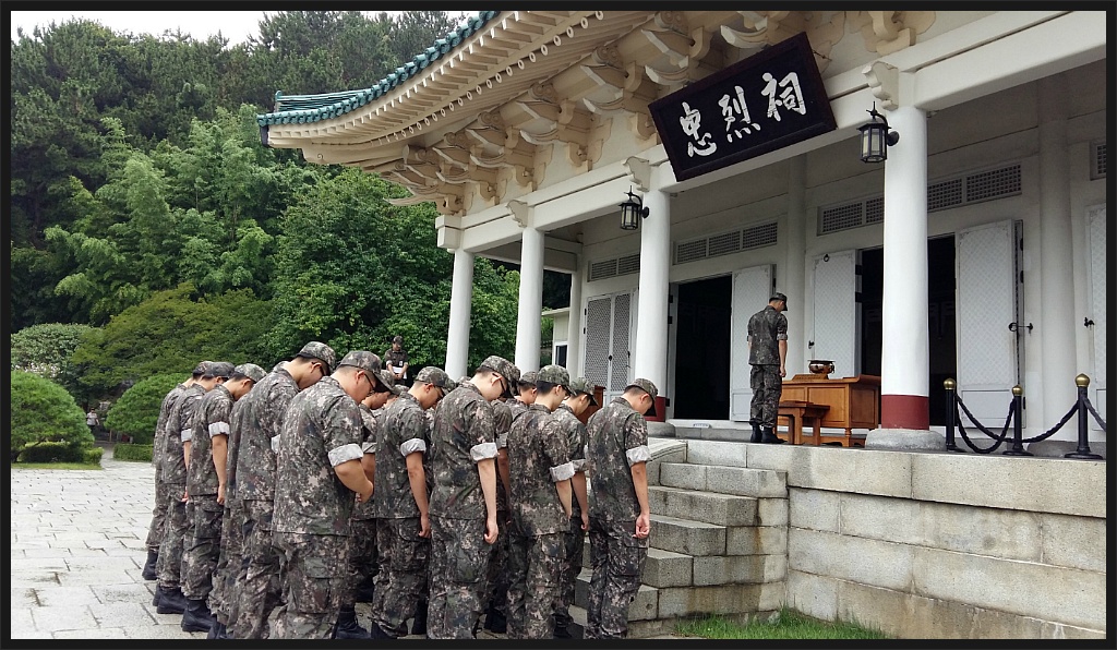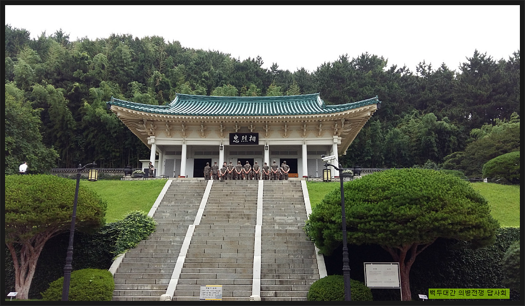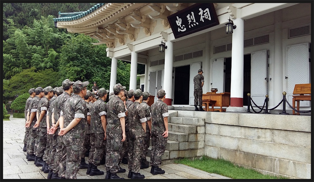 층렬사를 올라가는데, 해병대 전역병들이 하사관의 인솔로 참배를 할려고 줄서있다.