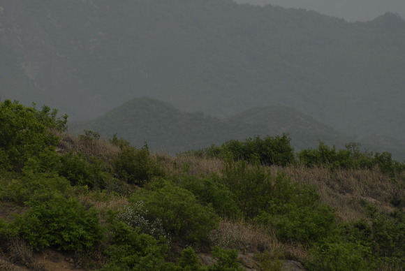 왼쪽에 히미하게 보이는 봉우리가 안시성의 주봉인 장대입니다. 보루성에서 동쪽으로 4km 떨어져 있습니다.