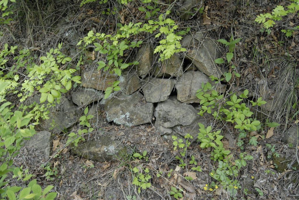 굴 입구에 쌓여있는 성돌, 굴입구에도 성벽을 쌓아 적군의 접근을 막은듯 합니다.