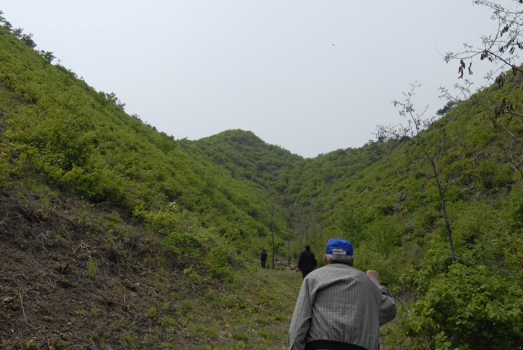 안시성 보루성 가는길, 맨앞에 가는 사람이 길을 안내해준 현지마을에 사는 중국여인이고 가운데 검은옷을 입은사람이 저와 동행한 김란기박사고요, 제 바로앞에 보이는분이 중국 안산 공산당 간부학교 교수이신 김일경교수이고요, 저는 맨뒤에서 김교수님을 보좌하며 올라 갔습니다. 그러나 만만한 산행은 아니였습니다.중간에 길을 잃어버려 한참동안 산속을 헤메었습니다. 저희들을 안내해준 중국여인네가 아니였으면 아마도 안시성 보루성은 우리가 찾지못했을 것입니다.