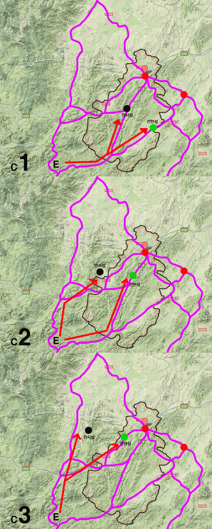 그리고 이후 전쟁지역을 D일 것이라 판단하여 이곳에 안시성과 건안성을 두어 설명을 했었는데요.