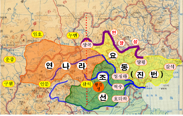 진개의 침략 전 『진번과 조선 및 연나라 강역 지도』