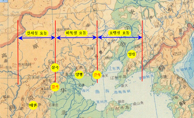 하북성 요동, 산서성 요동, 요령성 요동의 위치 |