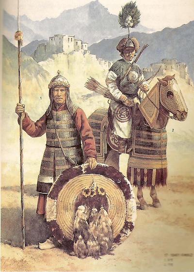 이 2기록을 가지고 보면 대충 토번인들의 무장형태를 알 수 있다. 긴 장창과 방패를 들고 칼을 차고 다니며 갑옷으로 몸을 감싸고