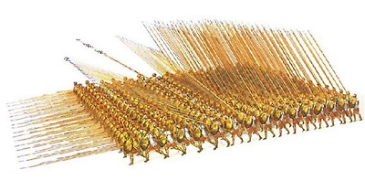 그들은 4~5m짜리 창과 방패로 무장하였으며 이러한 방진은 큰 효과를 가지고 왔다. 마케도니아 외에도 창 길이는 이보다 짦지만 그리스 폴리스국가들도 이러한 방진을 사용했으며 방진이 흩어지지 않는 이상 그들은 무시무시한 파괴력을 보여주었다.