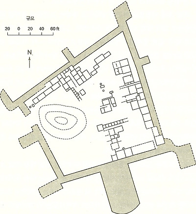 『실크로드 이야기 수잔 휫필드(Susan Whitfield)저』에 나오는 이 평면도는 티벳 요새의 구조를 알 수 있는데 큰 도움을 준다. 그들은 성벽위에 성벽을 만들었고 성 내부는 복잡한 미로같은 길로 만들어 성 안에서도 방어가 유리하도록 만들었다.