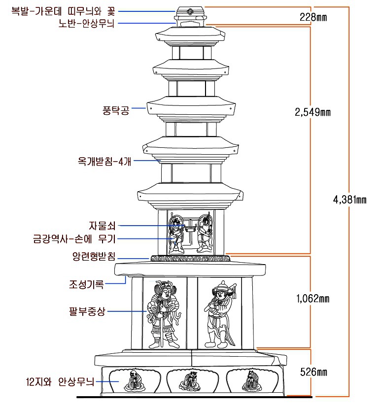 석탑이 조성된 시기는 기단부분에 세겨진 명문을 통해 현종(고려 8대 국왕) 원년(1010년) 2월 1일 부터, 현종 2년(1011년)으로 밝혀졌으며, 이를 통해 고려 초~중기의 갑옷이 반영되었을 것으로 추측됩니다.