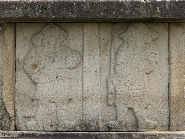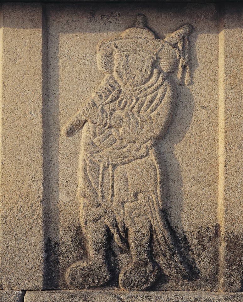 인위적인 훼손이 심하여 알아보기가 힘들다. 갑옷과 투구의 양식은 당나라+송나라식 양식을 보인다.