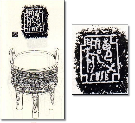 이 초기형태의 문자는 우리가 흔히 알고 있는 바와 같이 갑골문 이후에 나온 것으로 추정하고 있는 '금문'입니다. 그것도 초기 금문이죠.