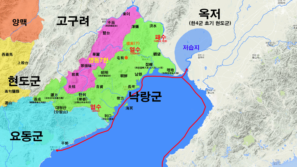 참고로, 한사군 낙랑을 지도에 비정해 보았습니다.