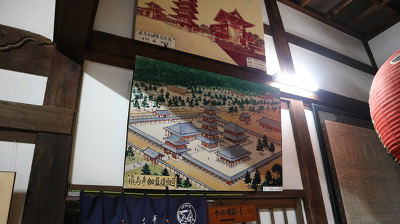 타치바나테라는 쇼토쿠 태자의 탄생지로 불린다. 본당에는 쇼토쿠태자 상이 안치되어있다. 그리고 본당 옆에는 얼굴이 모양이 다른 이면석이 있었다.