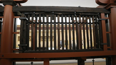 옛날에 산전사(야마다레라)가 불타면서 회랑 벽면이 그대로 넘어지고 땅속으로 묻혔다.