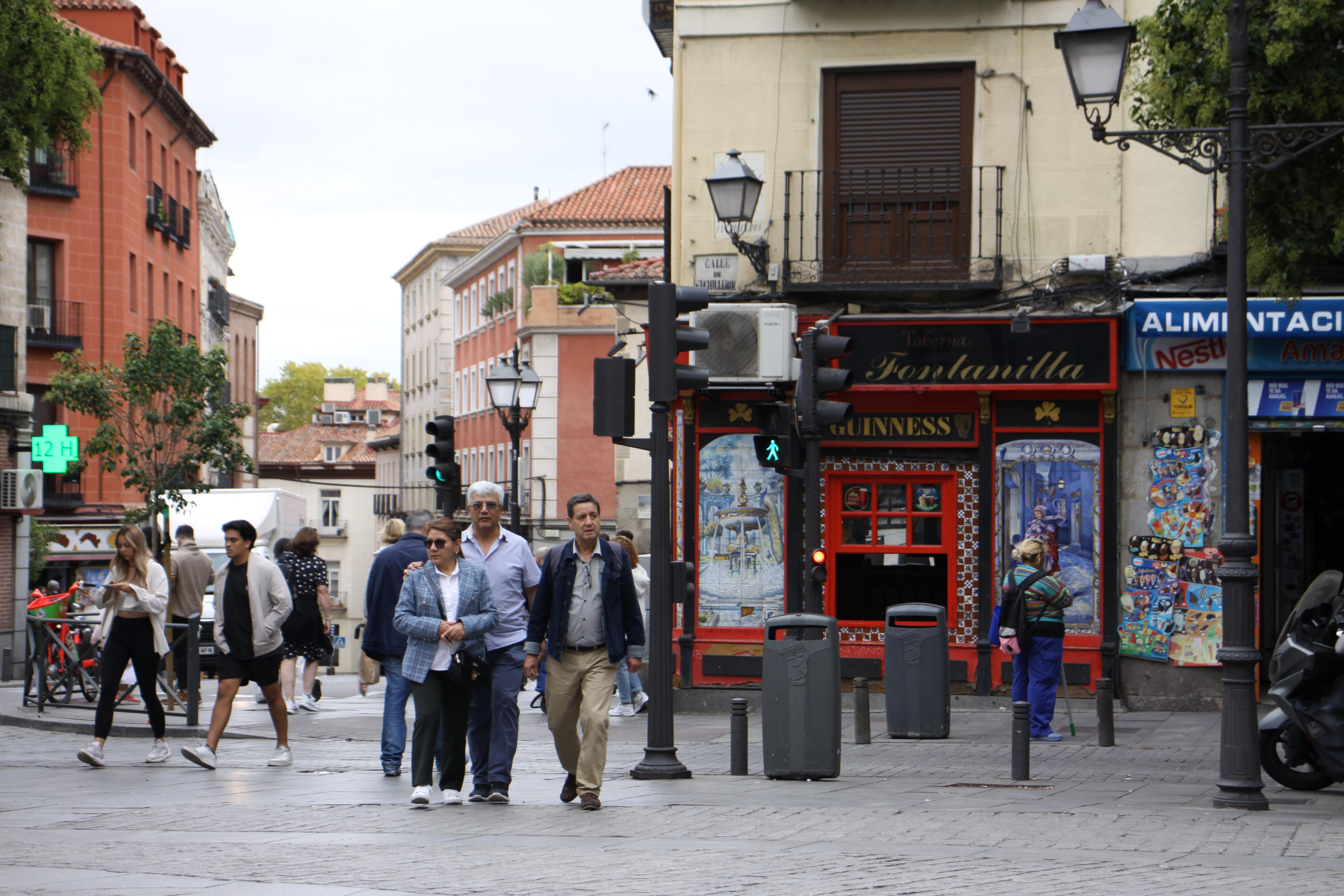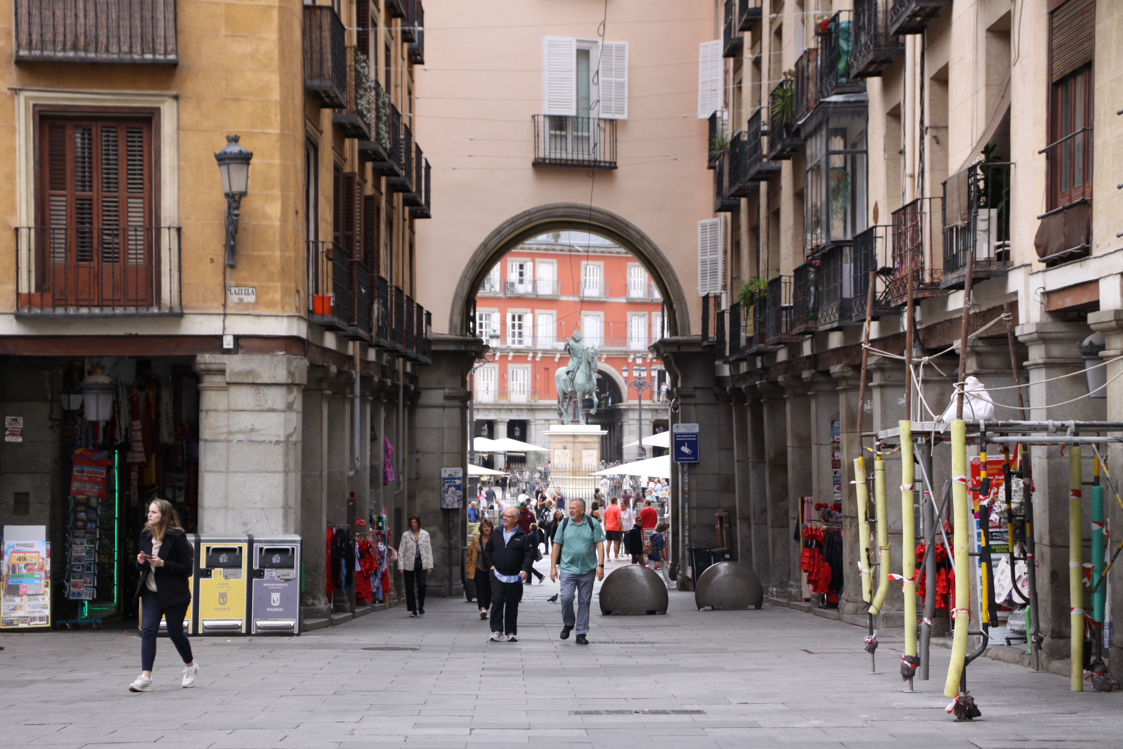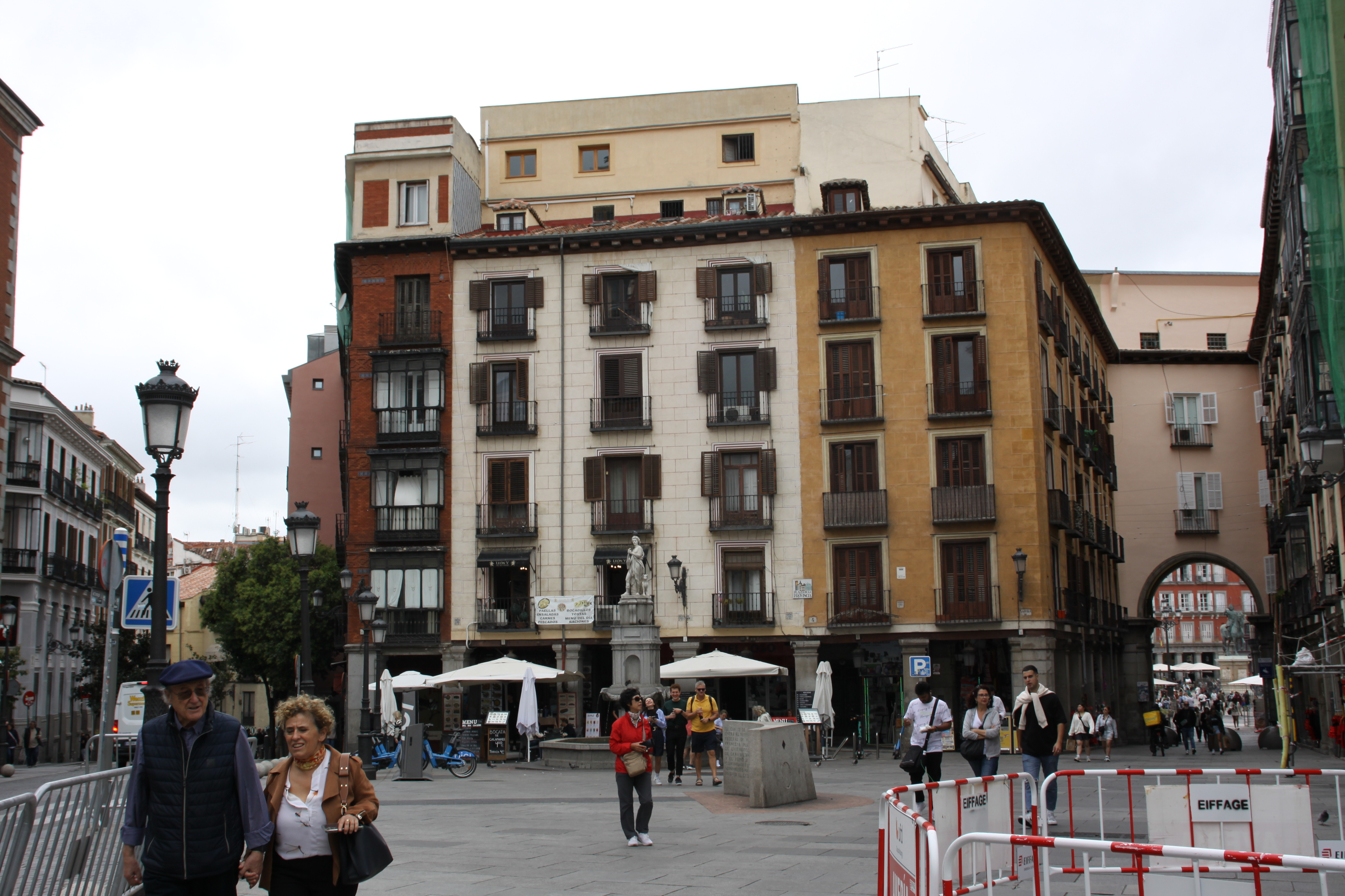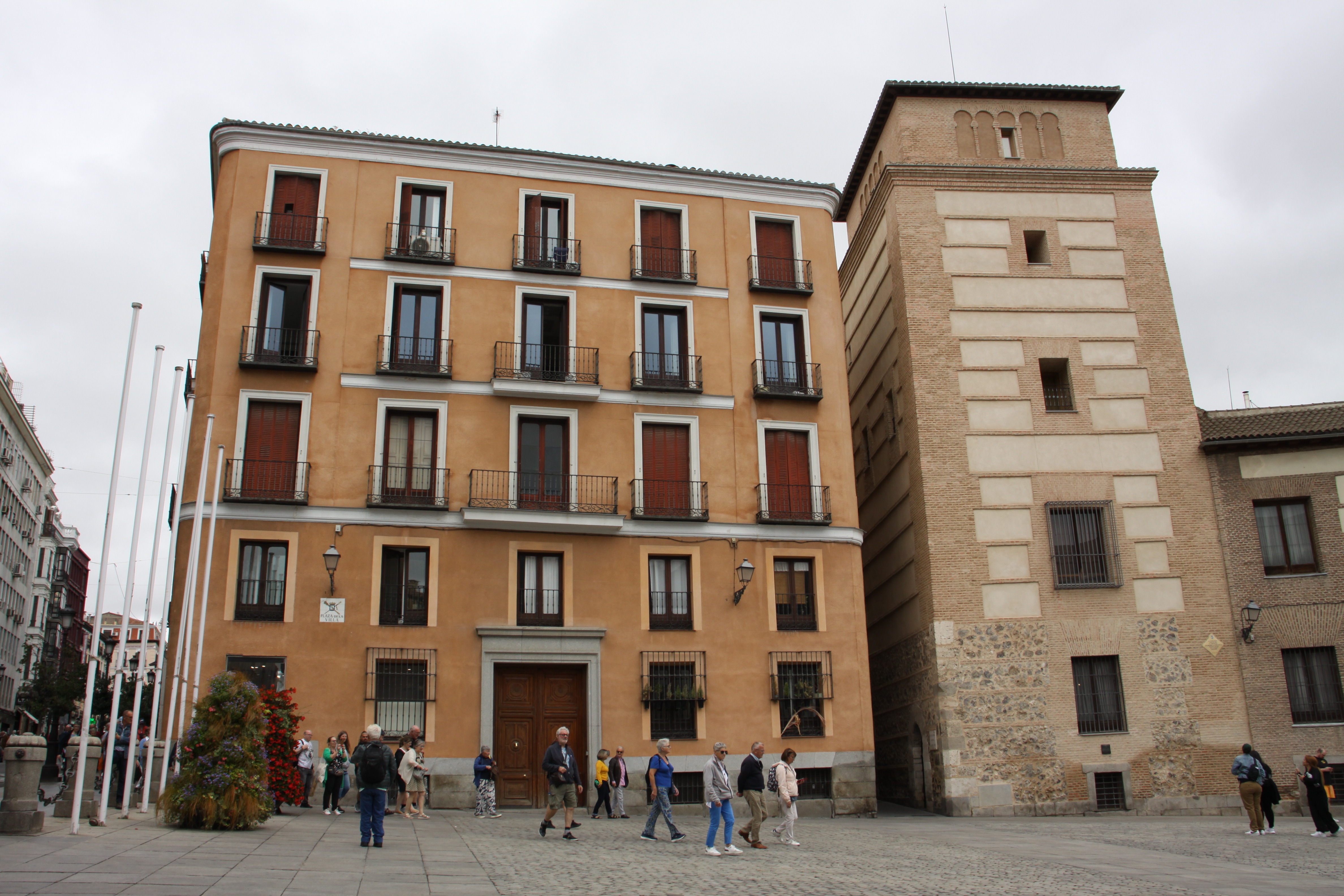 왼쪽에 마드리드에서 제일 오래된 건축물(Torre de los Lujanes)가 있다. 오른쪽에는 마드리드 시청사로 사용하는 건축물(Casa de La Villa. City of Madrid)이 있다.