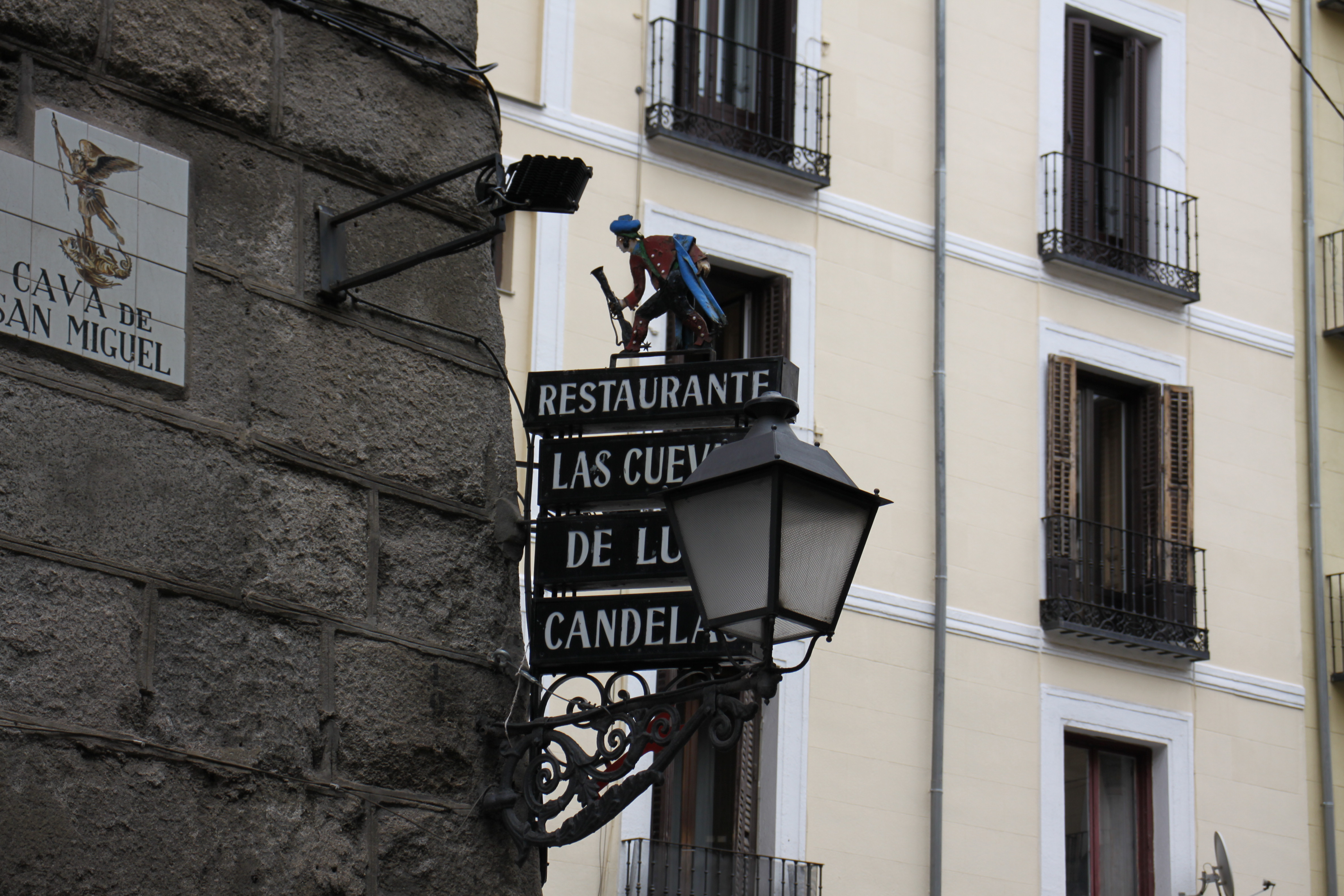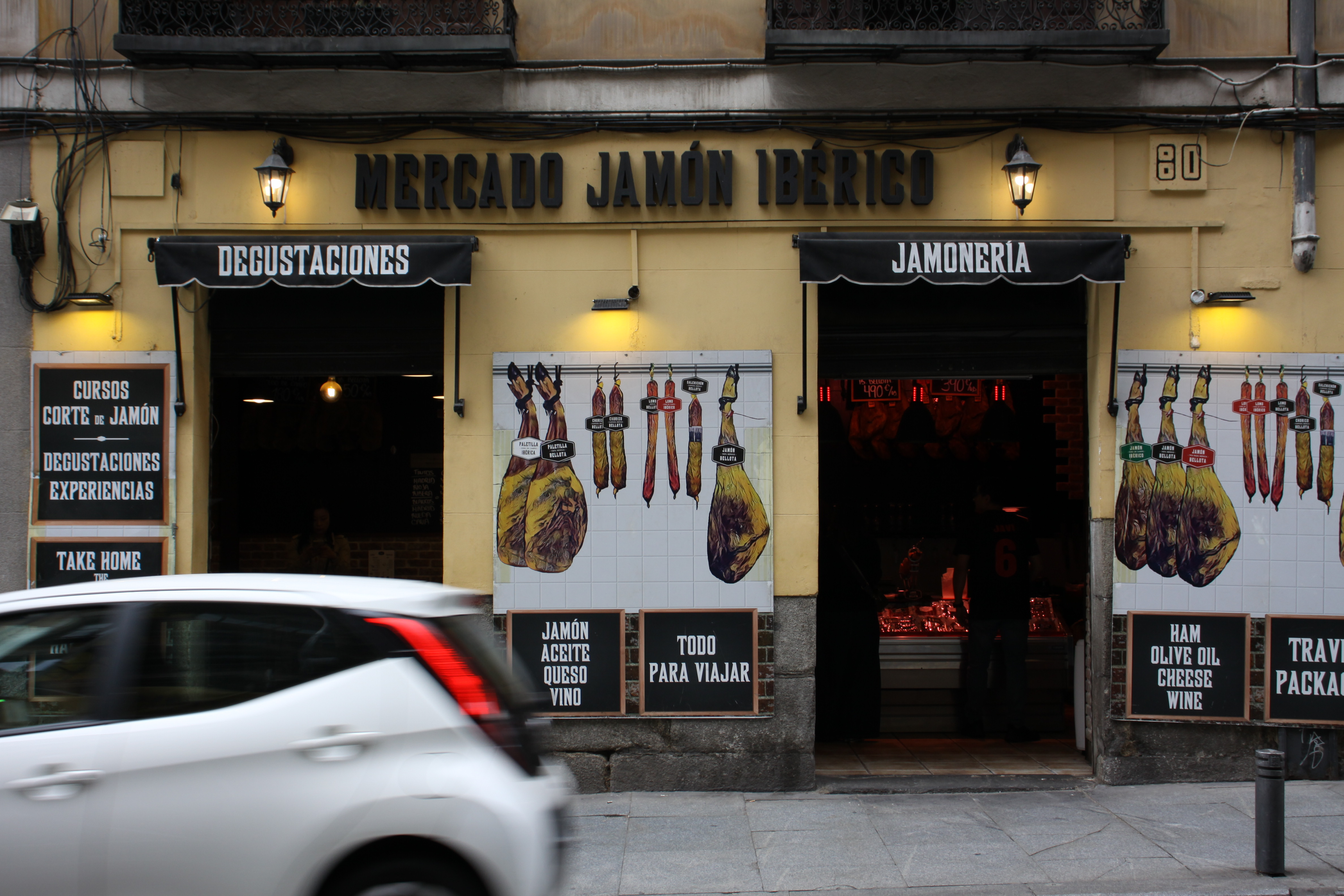 특히 마드리드가 스페인의 수도가 된 1561년경의 풍경화가 인상적이란다. 당시의 마드리드는 수도원과 교회뿐인 시골이었다는 것이 그림에서 알 수 있다. 하몽 전문 가게도 있고 골목에는 쏘맥이라는 한국 술집도 있다.