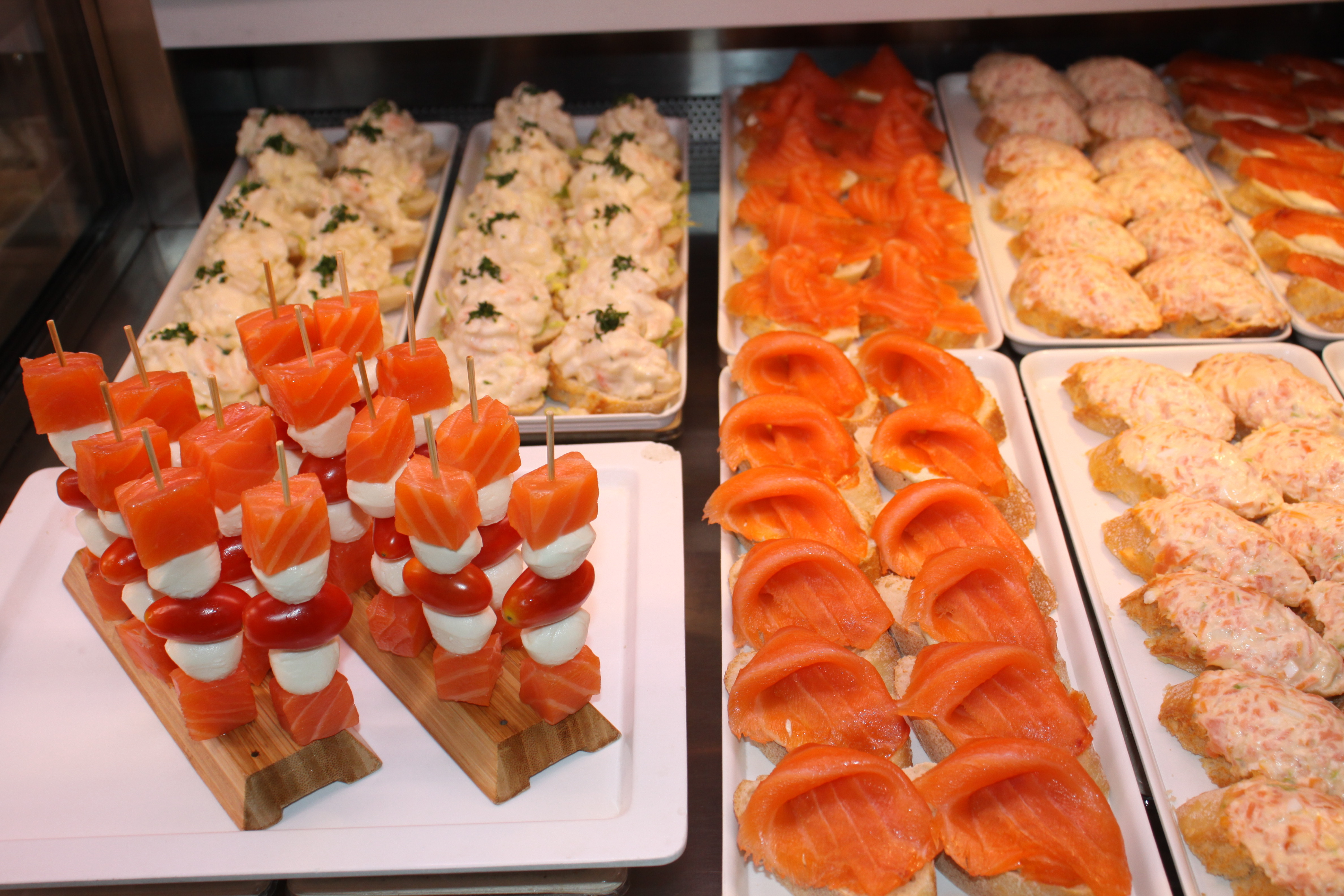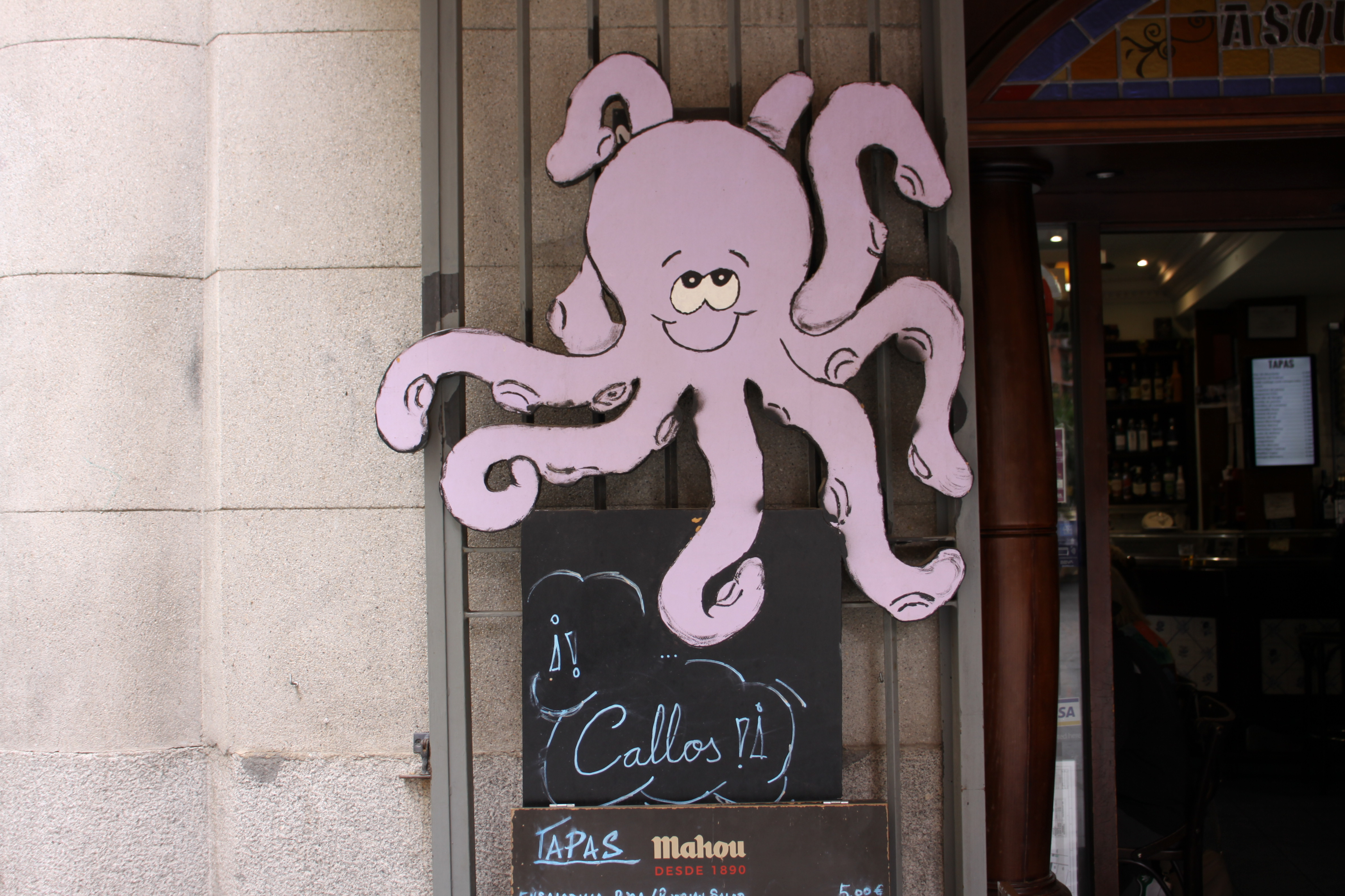 타파스(Tapas), 프리토(Frito), 하몽 등 다양한 음식이 화려하다. 간판이 멋지다. 문어(뽈뽀)요리도 보인다. 오래 된 식당(Taberna de La Daniela) 이 보이는 작은 광장에 멈췄다.