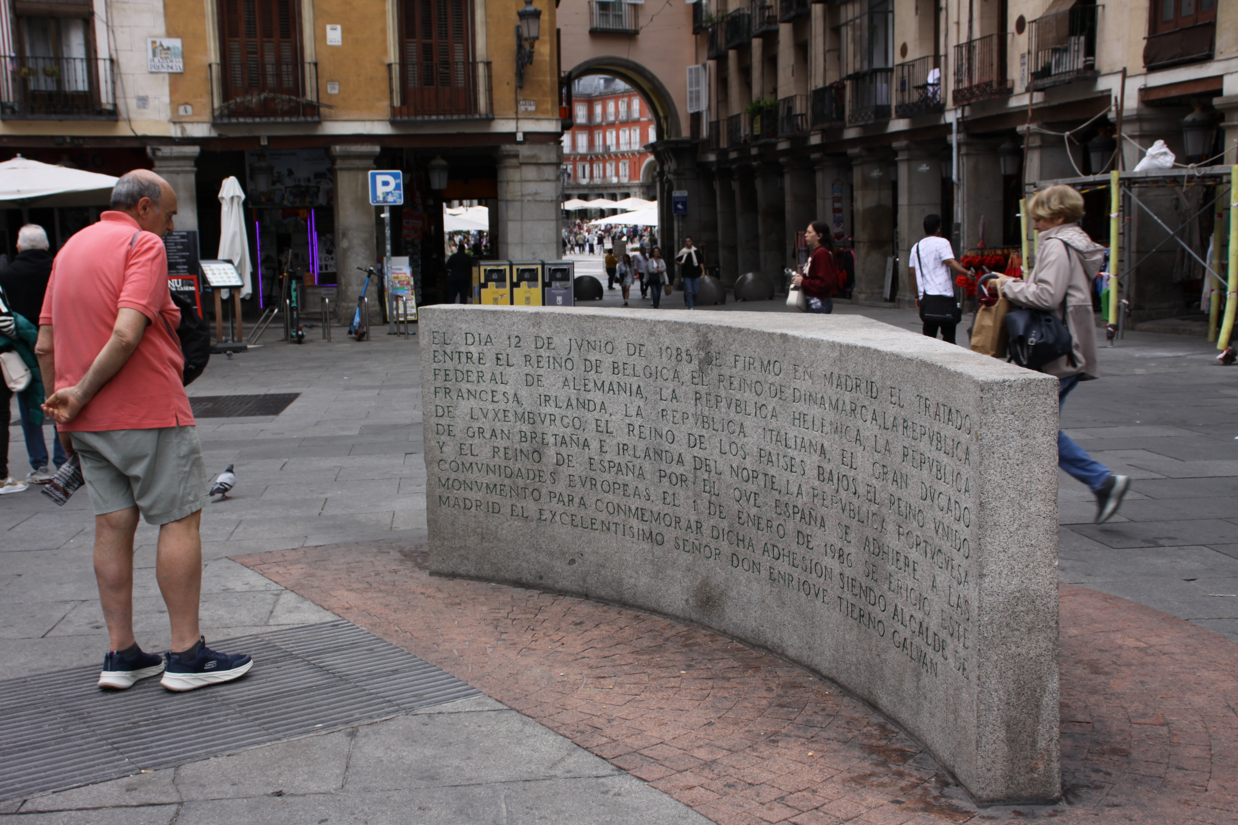광장에는 작은 분수와 돌비문 그리고 여신상이 자리를 차지하고 있다. 돌비문(Monumento Conmemorativo de la Adhesión de España a la Comunidad Económica Europea)은 조약을 기념하는 돌비석과 개를 함께한 여신상이다.
