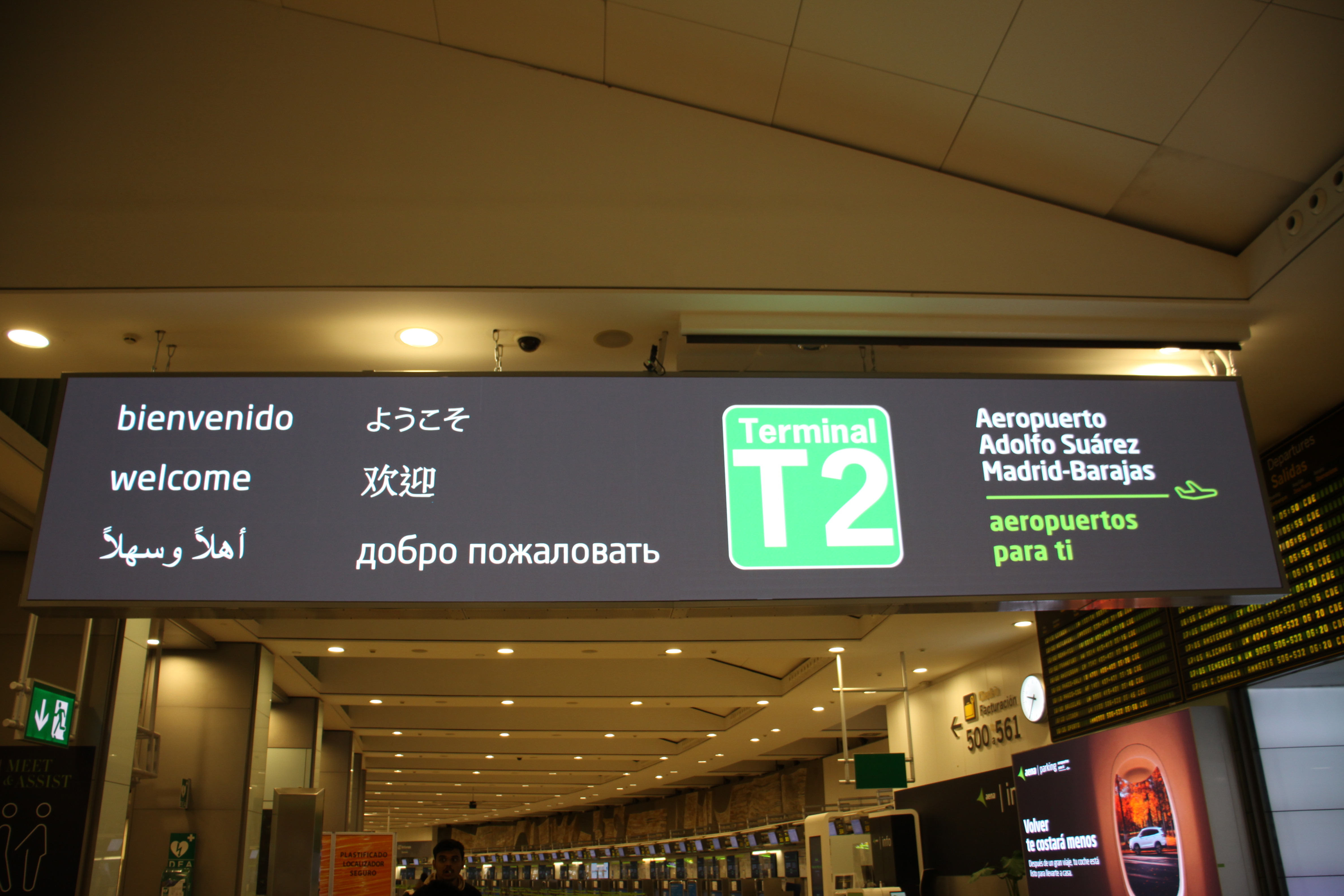 이것이 가장 저렴하게 공항으로 가는 방법이다. 국제 공항 마드리드 바라하스 국제공항(Aeropuerto Adolfo Suárez Madrid-Barajas) 터미널 2에 오후 6시에 도착했다.