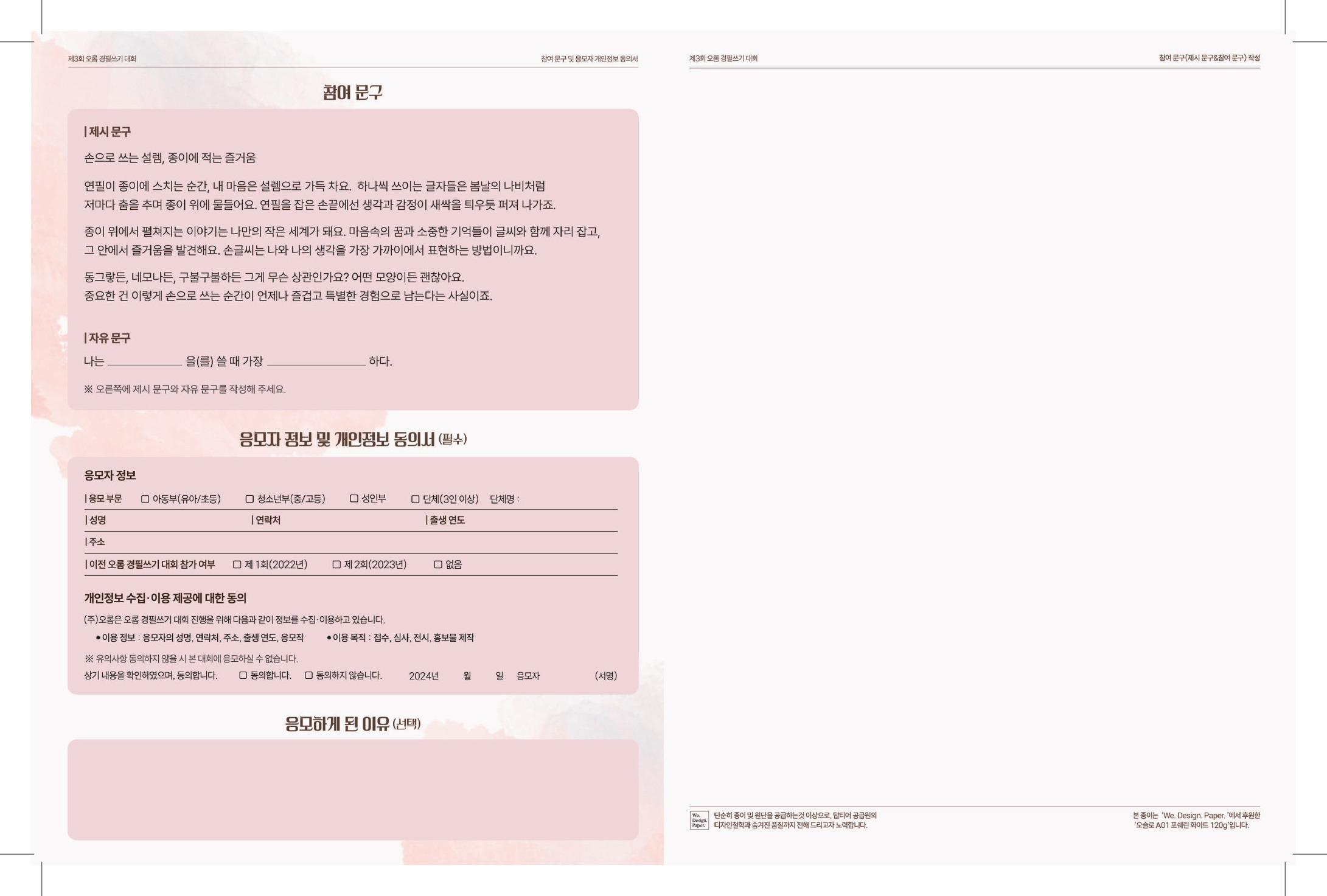 2. 손글씨 작성 : 참여 문구 (제시 문구 + 자유 문구) 를 손글씨로 작성해 주세요.