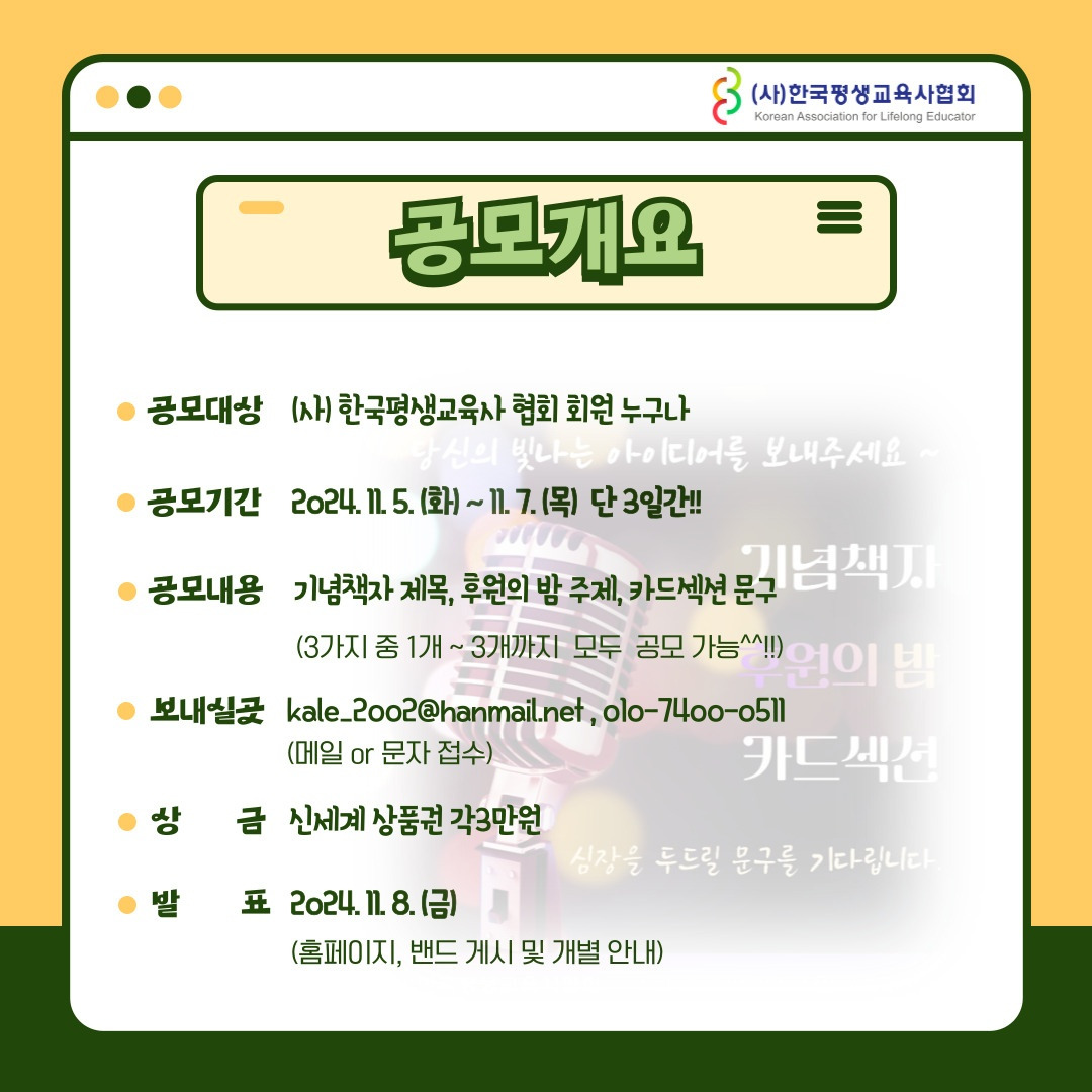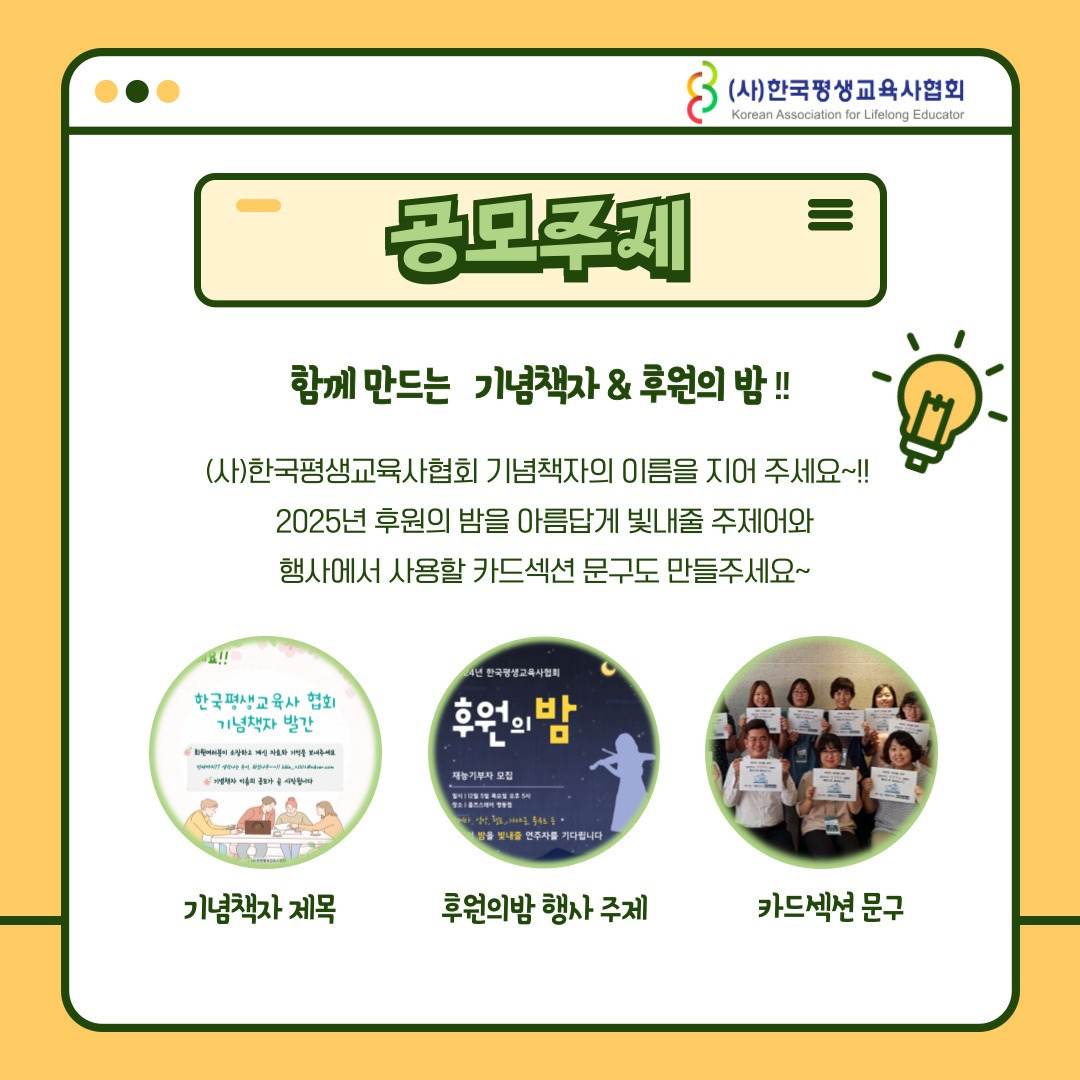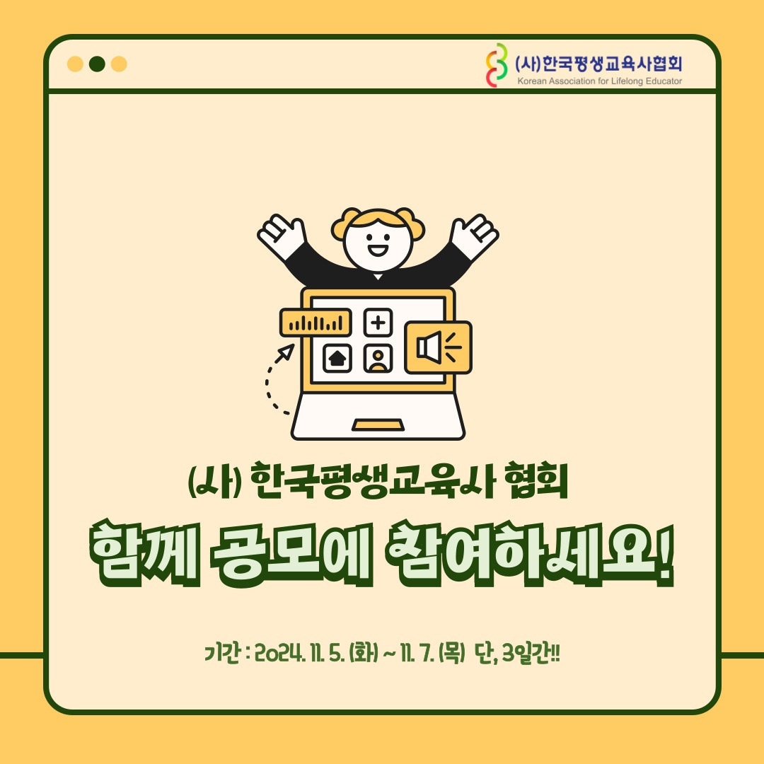 ์ด์ ใ(์ฌ)ํ๊ตญํ์๊ต์ก์ฌํํ 22์ฃผ๋ ๊ธฐ๋ ใ ย ๊ณต๋ชจ ์ด๋ฒคํธ๋ฅผ ์งํํ์ค๋, ํ์ ย ์ฌ๋ฌ๋ถ์ ๋ง์ ๊ด์ฌ๊ณผ ์ฐธ์ฌ ๋ถํ๋๋ฆฝ๋๋ค.
