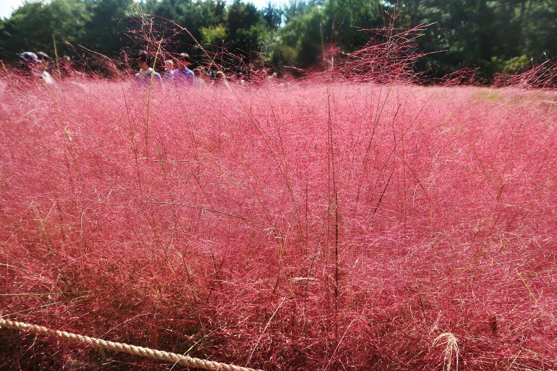 핑크뮬리는 같은 볏과 식물인 억새와 닮아서 분홍억새로 불리기도 한다.
