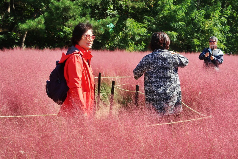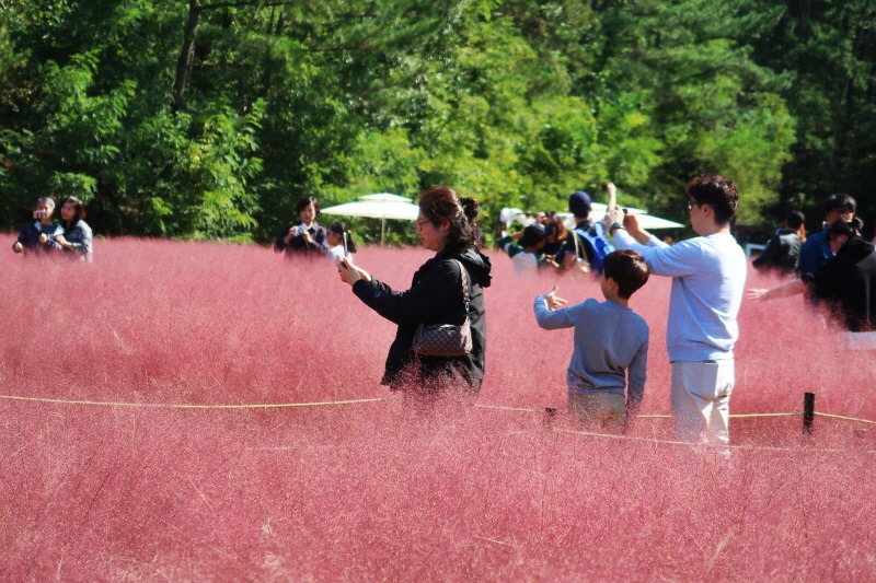 분홍빛을 띠는 서양 억새의 일종인‘핑크뮬리'의 멋스러운 가을 정취를 만끽하다.